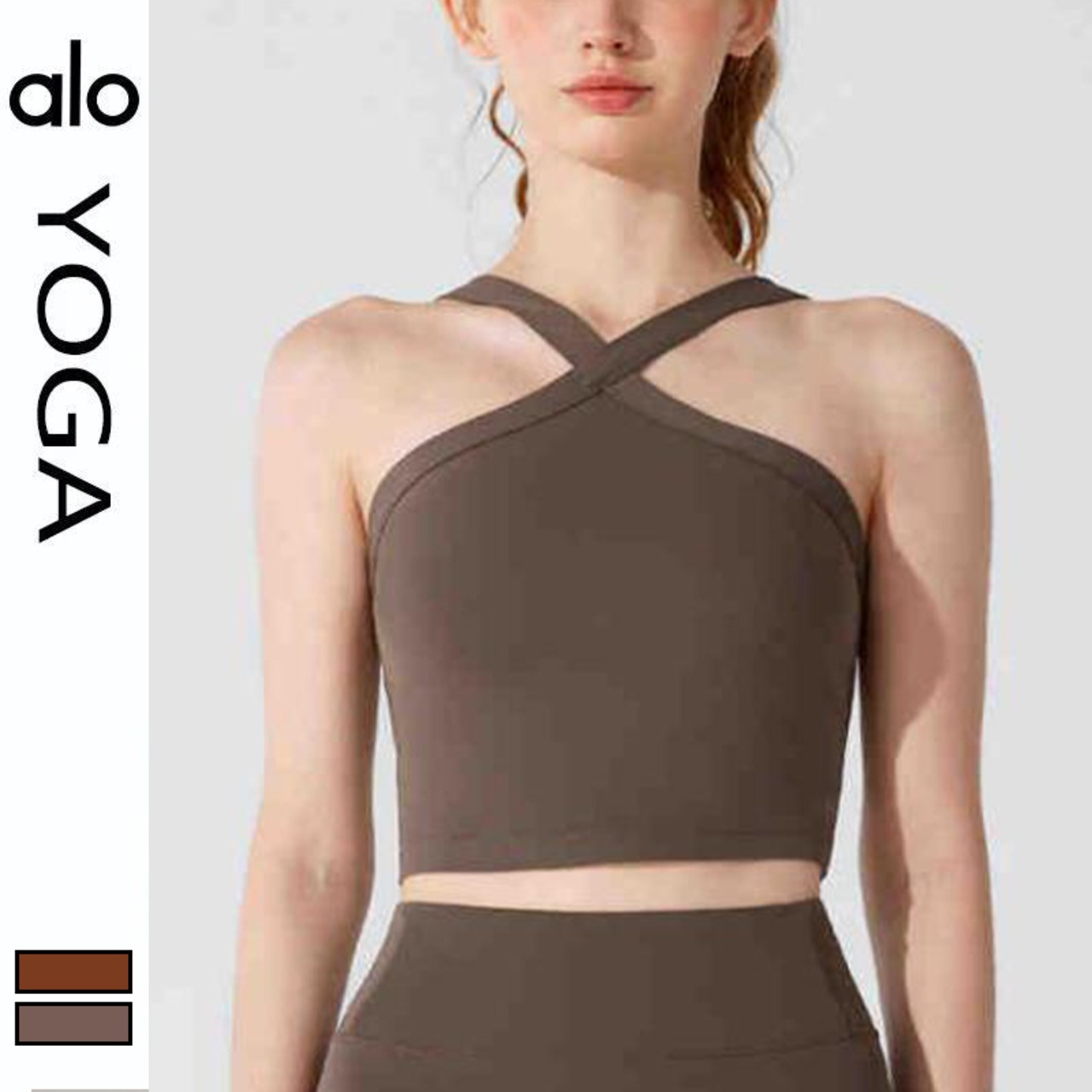 Alo Yoga アロヨガ トップス ブラトップ スポーツブラ タンクトップ キャミ ハーフ レディース ホット ヨガ 茶褐色 ブラウン