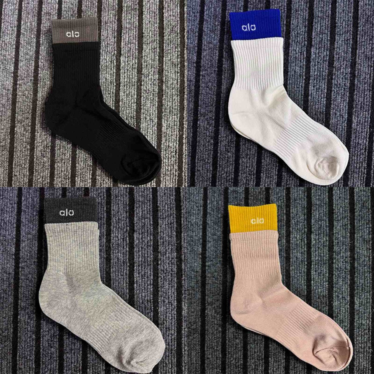 Alo Yoga アロヨガ 靴下 スポーツ用 ラインソックス 通気性 滑り止め 男女兼用 トレーニング ジム ランニング 人気 韓国風 ストリート スポーツ ブラック ホワイト グレー ピンク