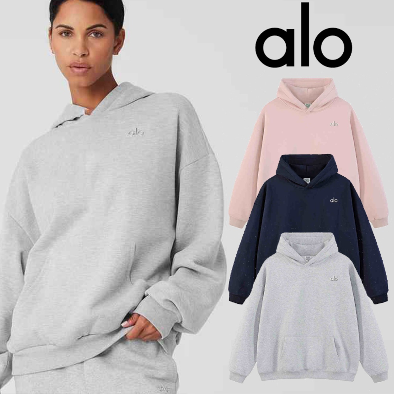 Alo Yoga アロヨガ パーカー 3D logo フィットネス トレーニング 春秋 ヨガ フード付き トップス ランニング スウェット スポーツ 長袖 レディース グレー ネイビー ピンク