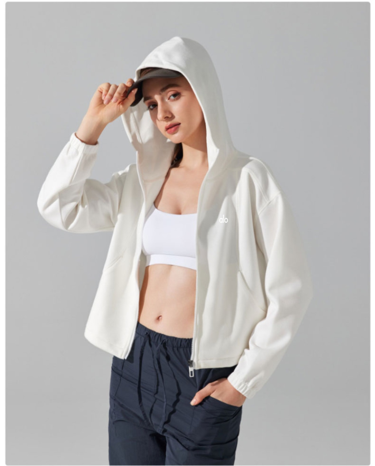 Alo Yoga アロヨガ ジャケット フィットネス トレーニング 春秋 ヨガ フード付き トップス ランニング ジッパー パーカー スポーツ 長袖 レディース ブラック ホワイト