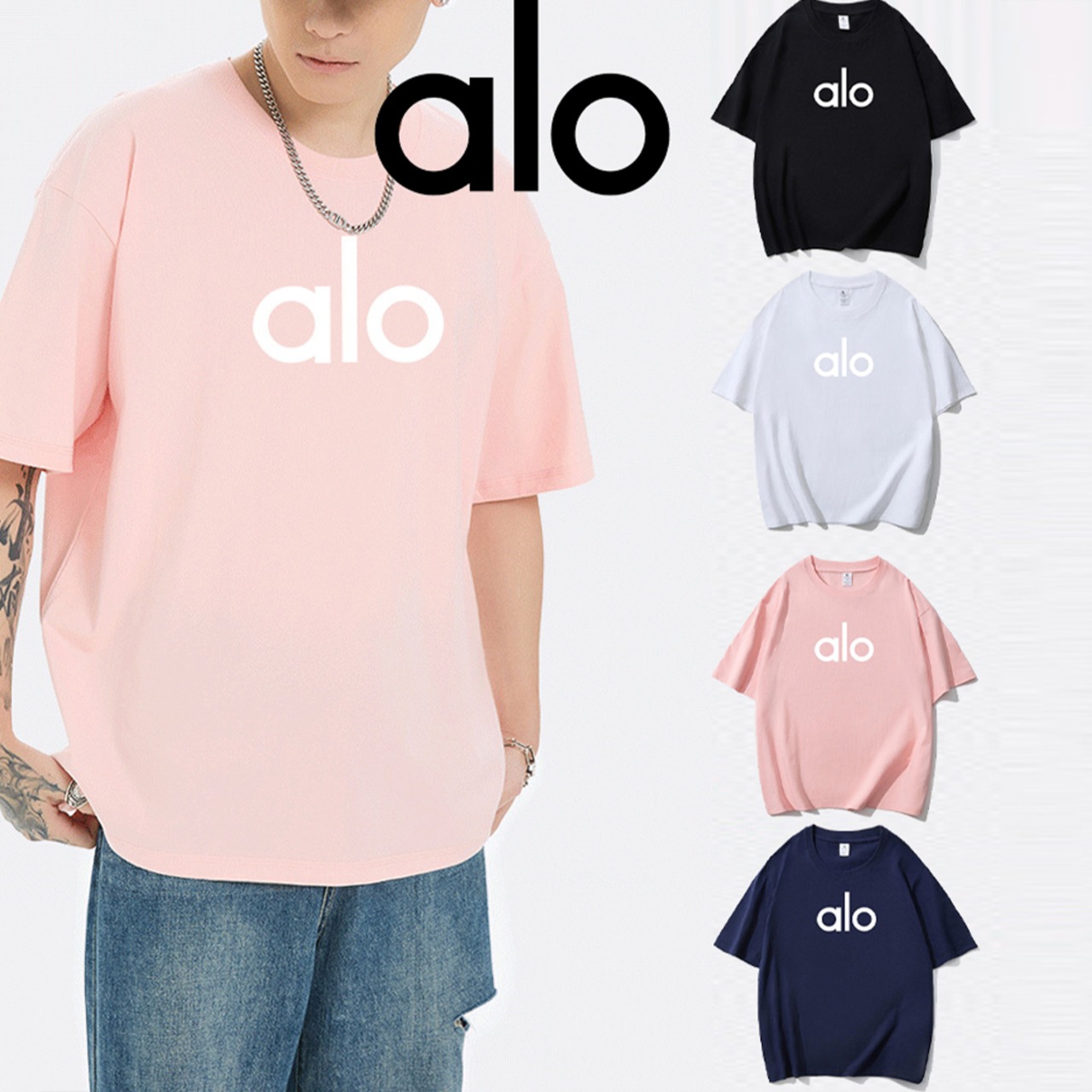 Alo Yoga スウェット アロヨガ クルーネック Tシャツ レディース メンズ カジュアル リラックスフィット 春夏 スポーツ ブラック ホワイト ネイビー ピンク