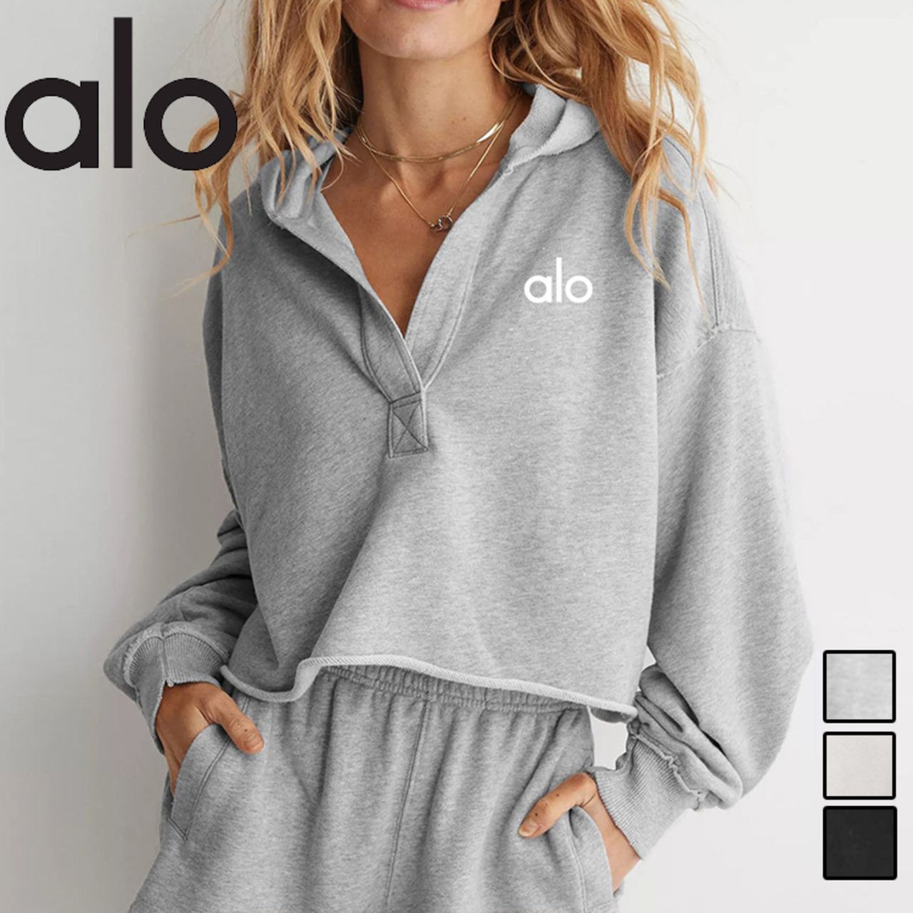 Alo Yoga アロヨガ スウェットシャツ Vネック 長袖 スポーツウェア ヨガ パーカー ブラック ホワイト グレー