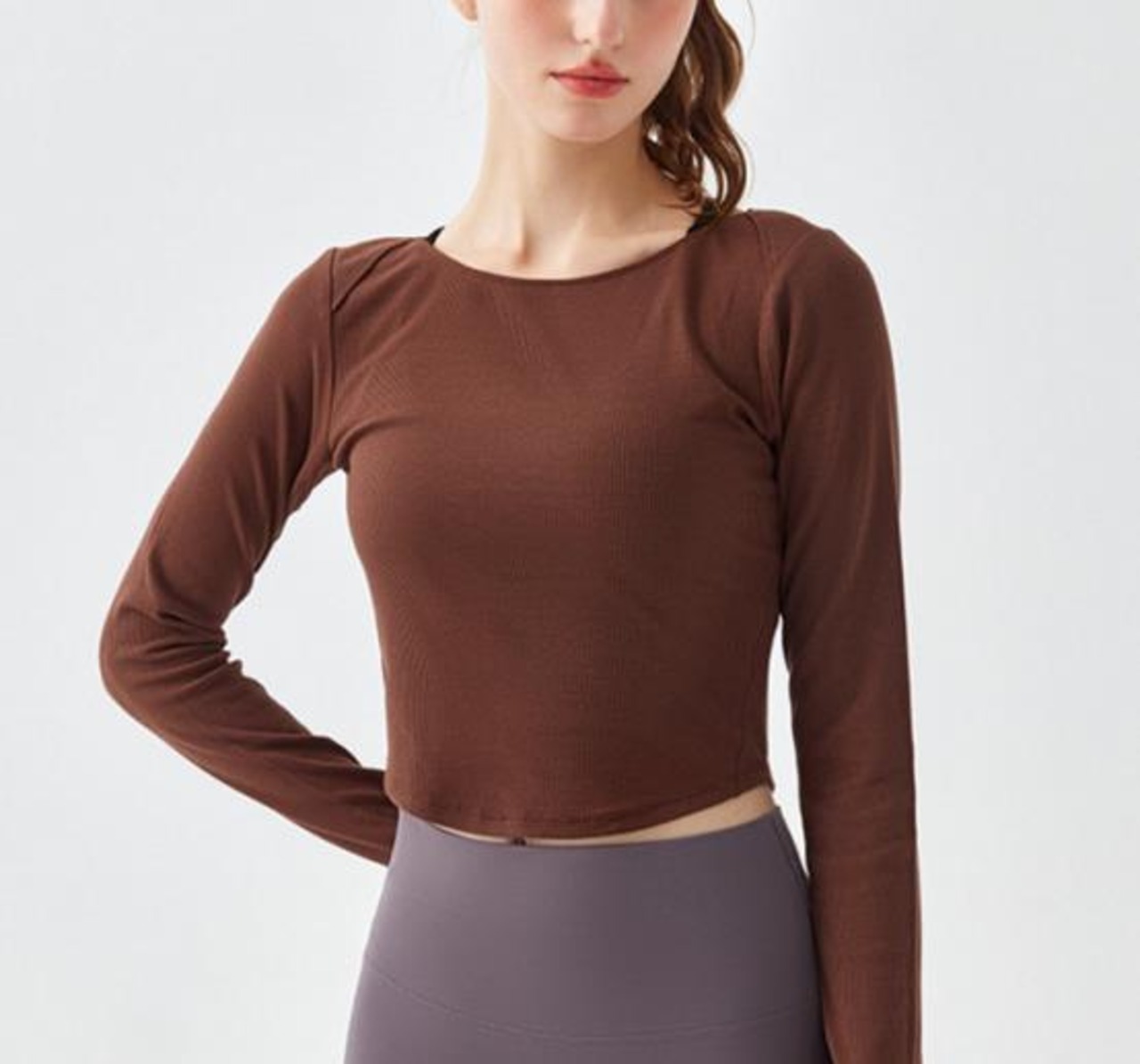 Alo Yoga アロヨガ 長袖 リブ トップス パーカー ブラウン グレー レディース スウェット ランニング トレンドデザイン フィットネス トレーニング 春夏 ヨガ