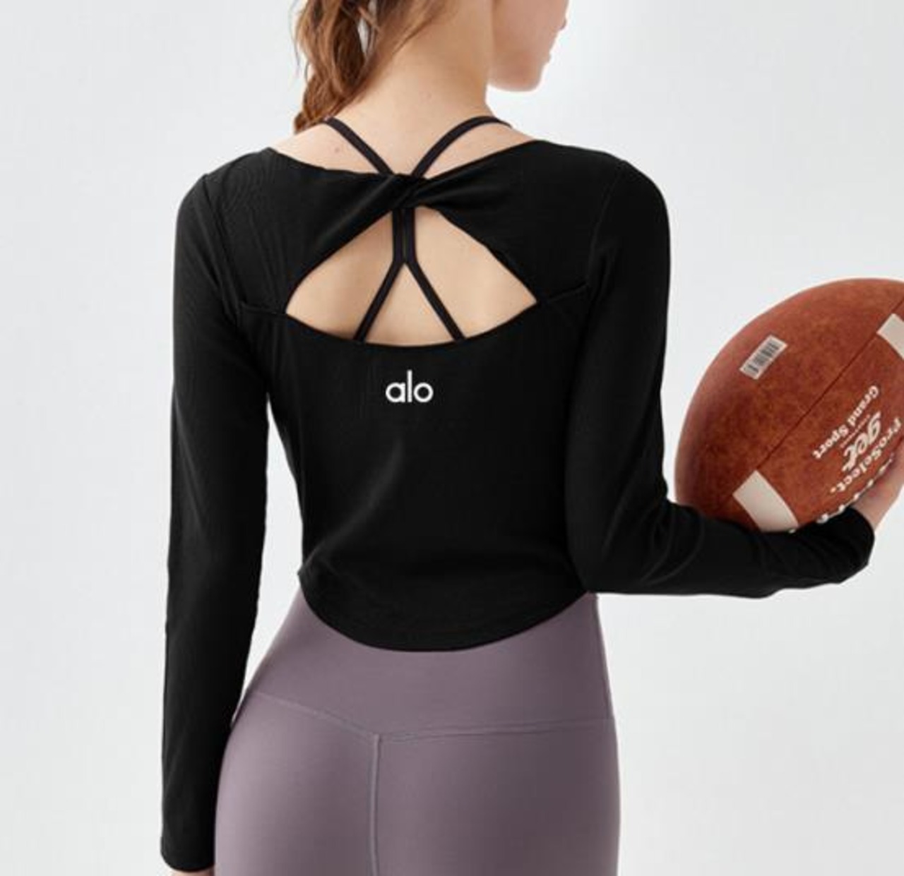 Alo Yoga アロヨガ 長袖 リブ トップス パーカー ブラック ホワイト レディース スウェット ランニング トレンドデザイン フィットネス トレーニング 春夏 ヨガ トップス