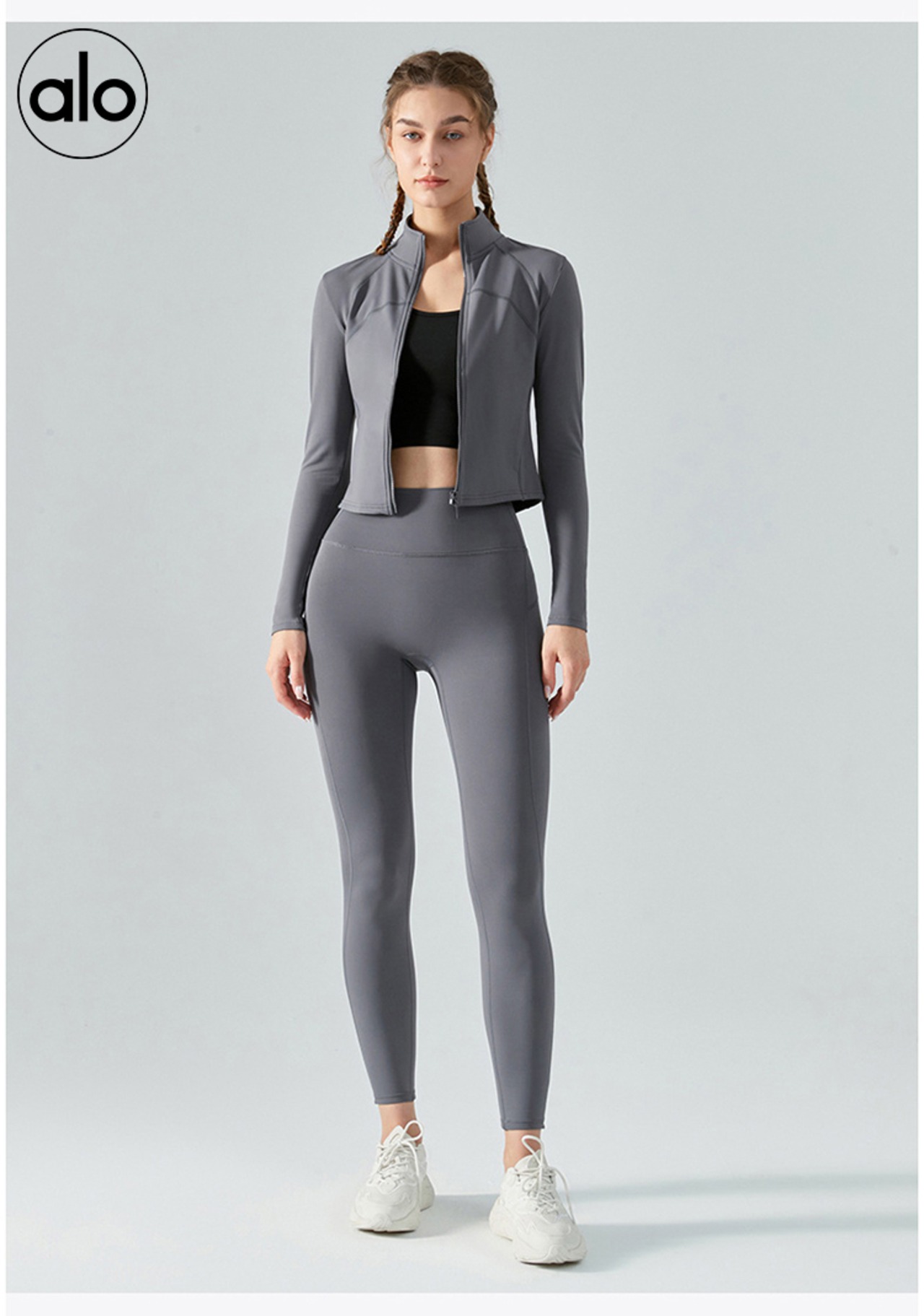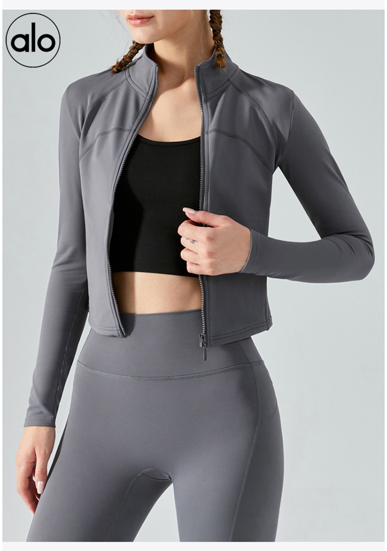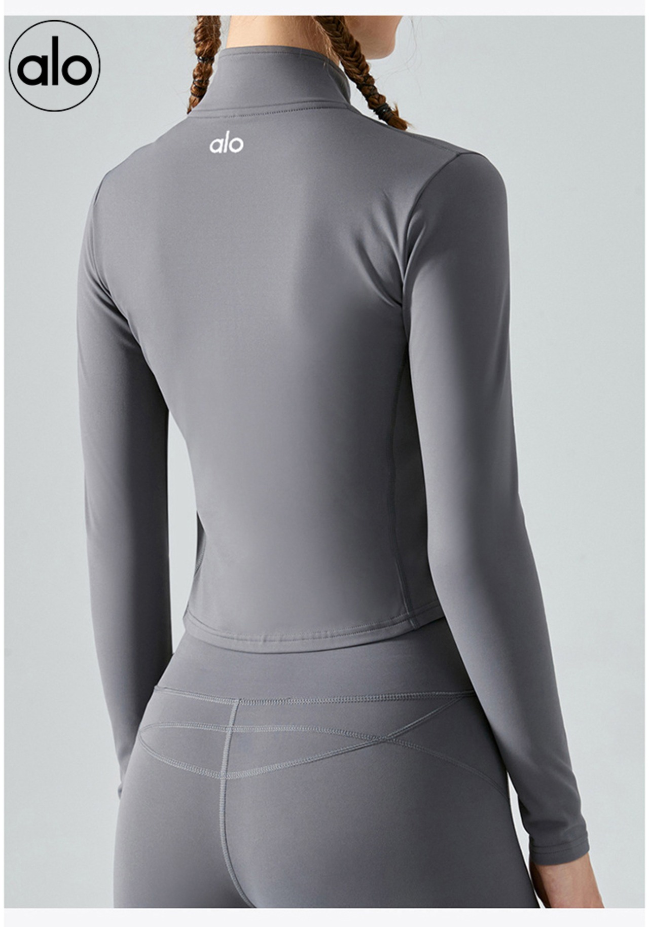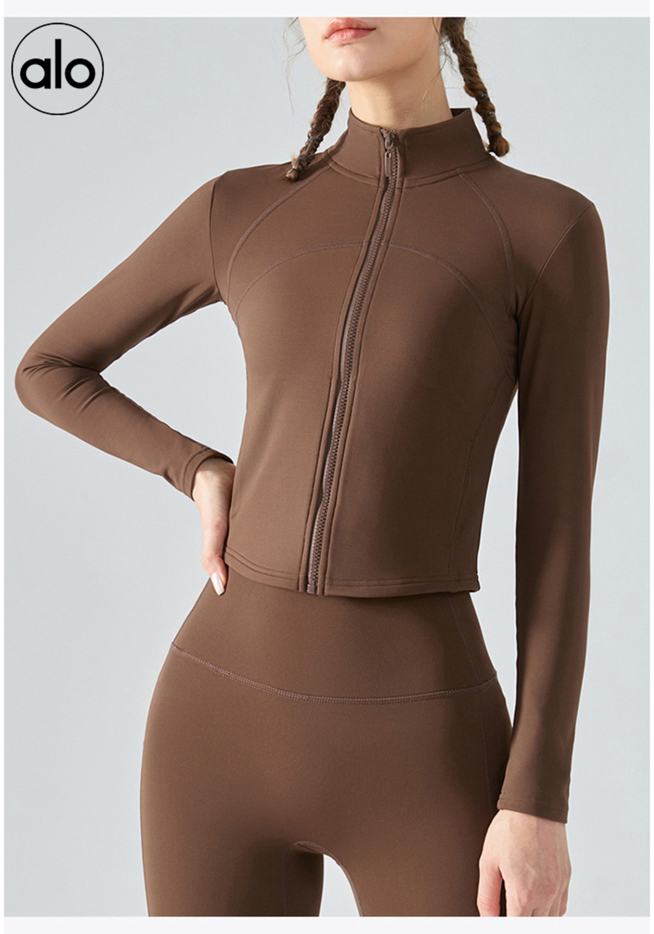 Alo Yoga アロヨガ ジャケット フィットネス トレーニング 春夏 ヨガ トップス ランニング ジッパー スポーツ 長袖 レディース グレー ブラウン