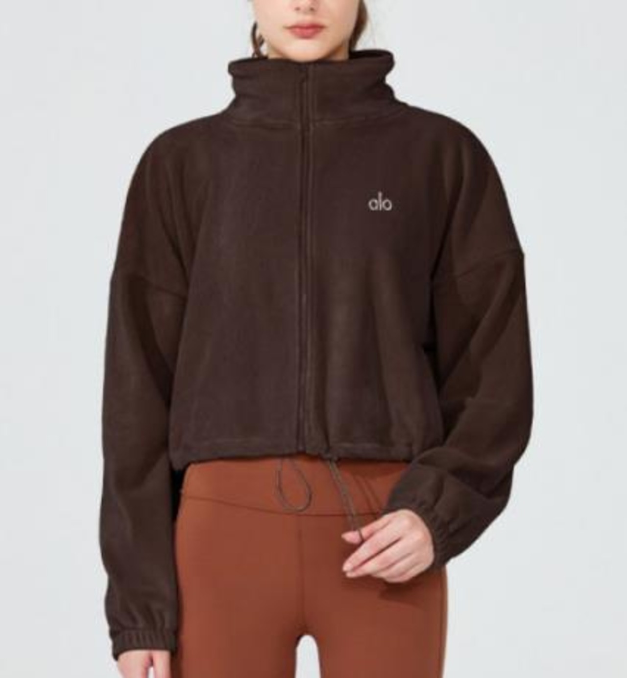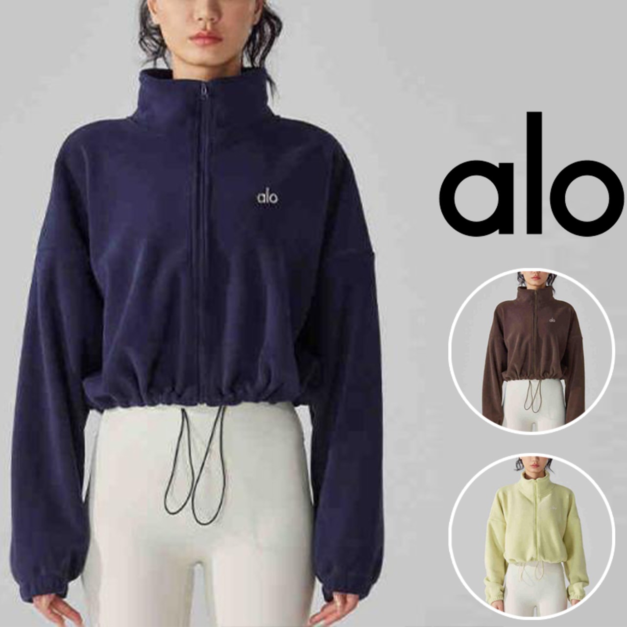 Alo Yoga アロヨガ ジャケット スウェット トップス 長袖 ハイネック レディース トレンド カジュアル スポーツウェア 軽量 保温 春秋冬 おしゃれ パープル ブラウン イエロー