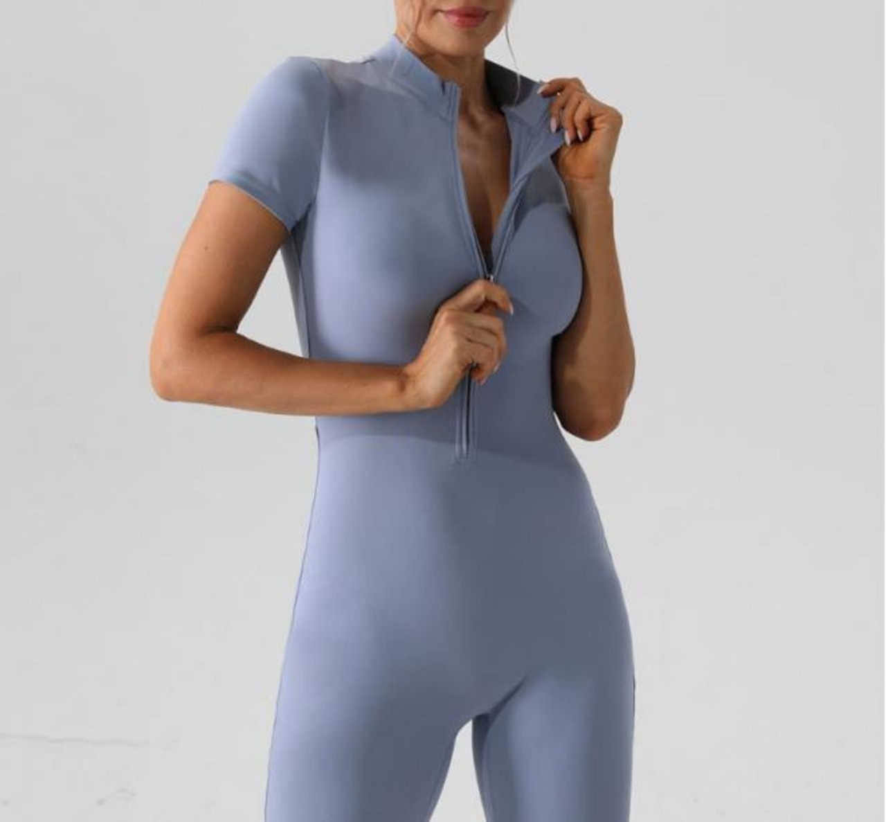 全身を包み込むオールインワンタイプで、トップスとボトムスが一体化しているため、運動中のずれや煩わしさが一切ありません。