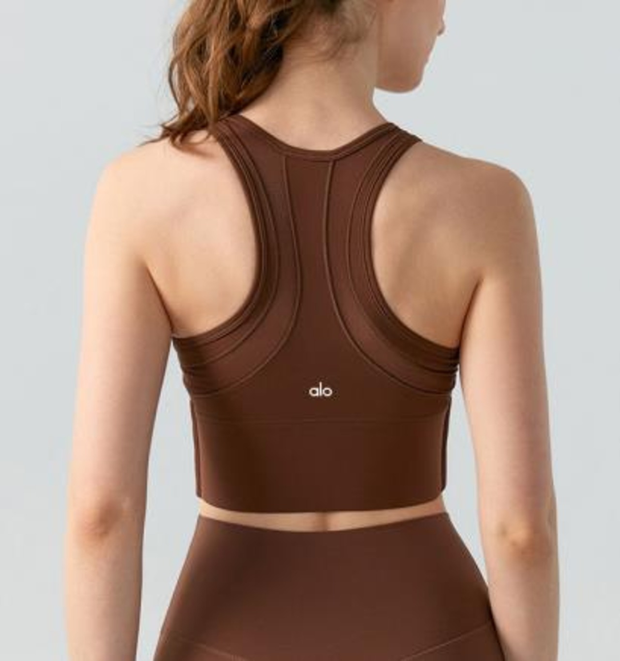 Alo Yoga アロヨガ スポーツブラ 揺れない 前開き レディース シームレス ランニング シームレス クロスバック フロントファスナー ヨガ ブラウン パープル