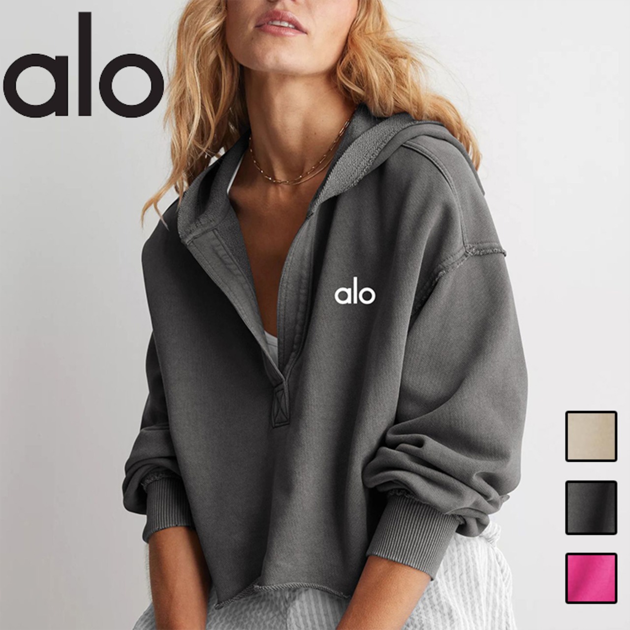 Alo Yoga アロヨガ スウェットシャツ Vネック 長袖 スポーツウェア ヨガ パーカー ダークグレー ピンク ベージュ