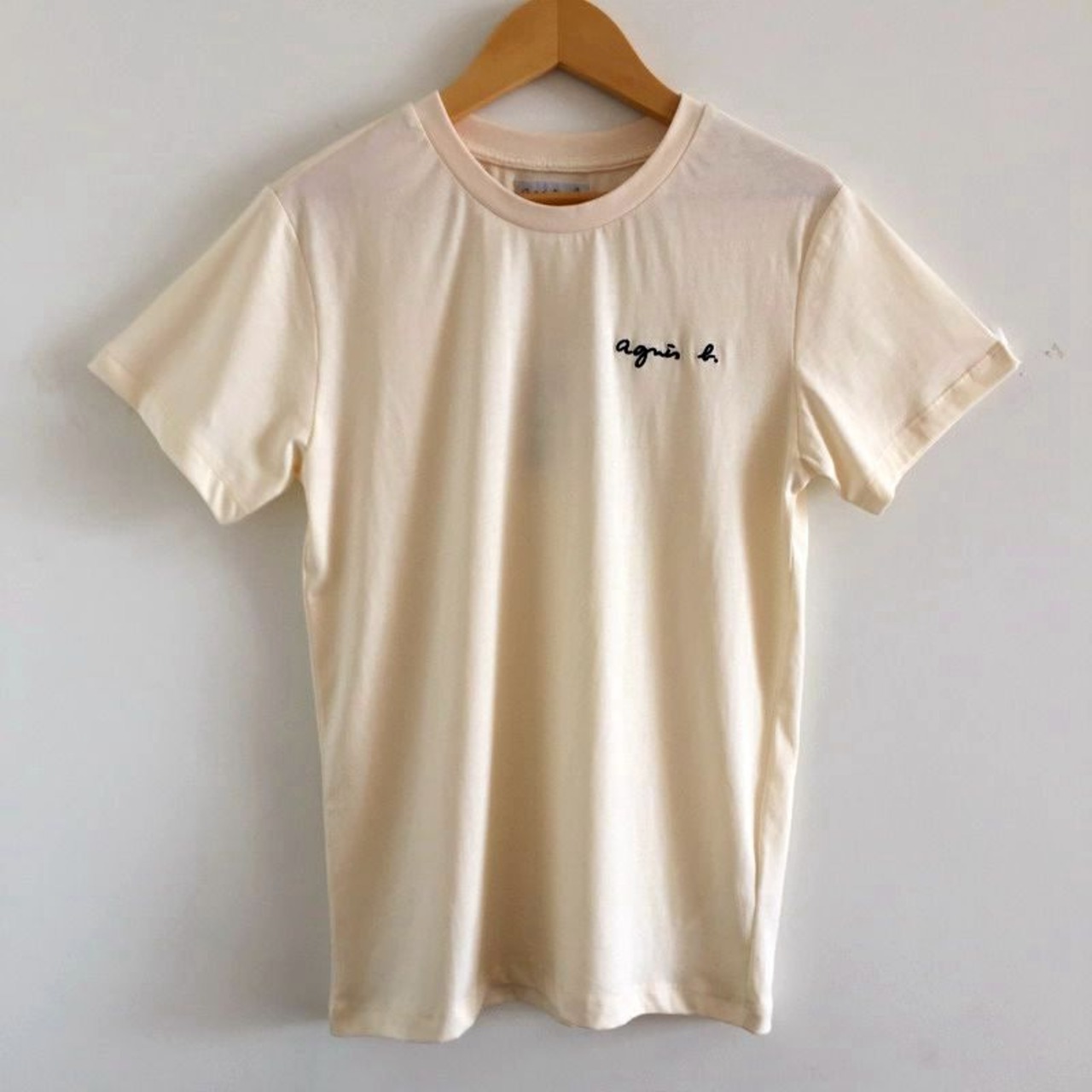 【在庫セール】agnes b. アニエスベー ロゴ 半袖 Tシャツ シンプル無地 カジュアル メンズ クルーネック 綿 半袖 Tシャツ ベージュ