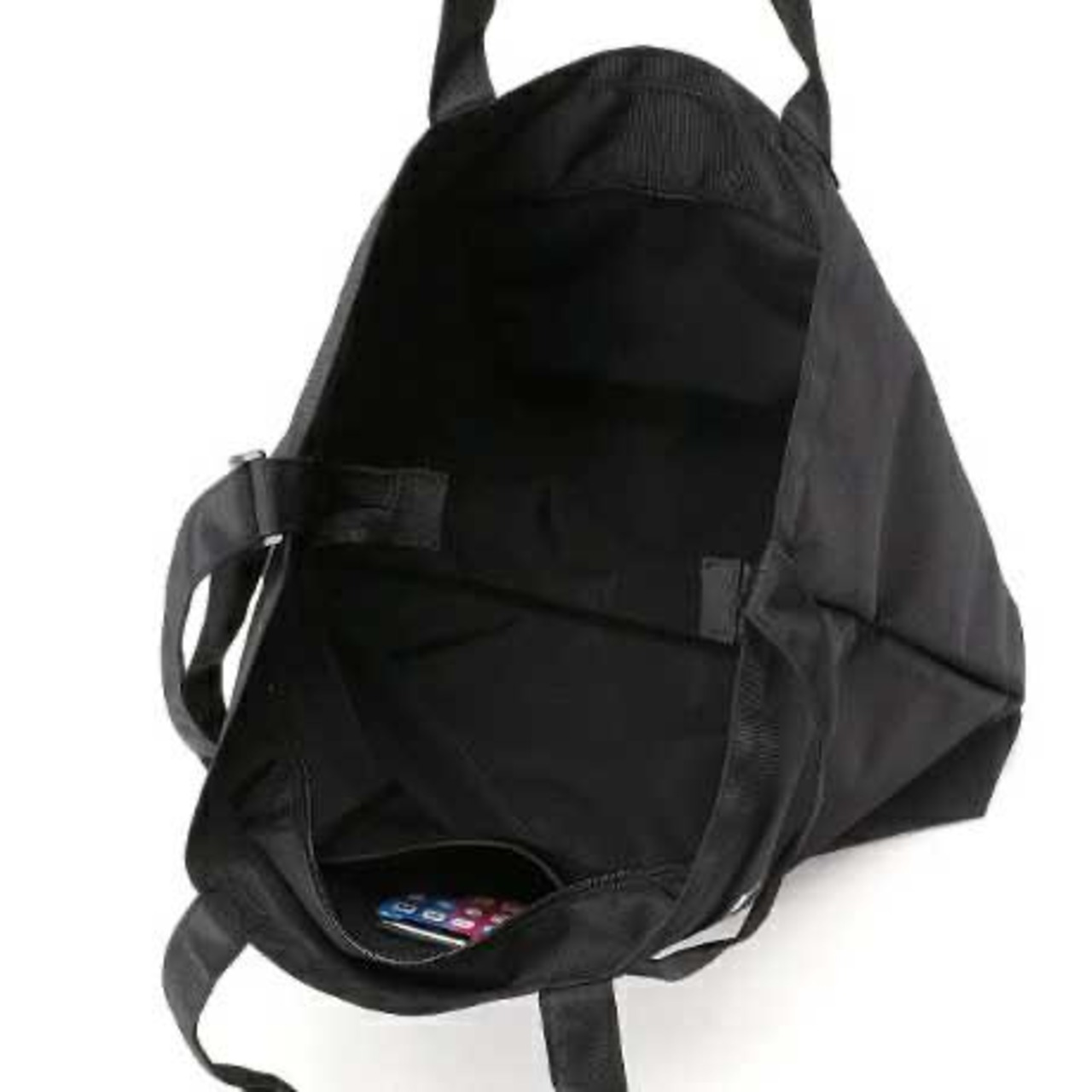 トゥービー バイ アニエスベーのロゴプリントが入ったビッグトートバッグ。ショルダーとしても使える2WAYです。バッグの口元はファスナー仕様で内ポケットも付いたデザイン。