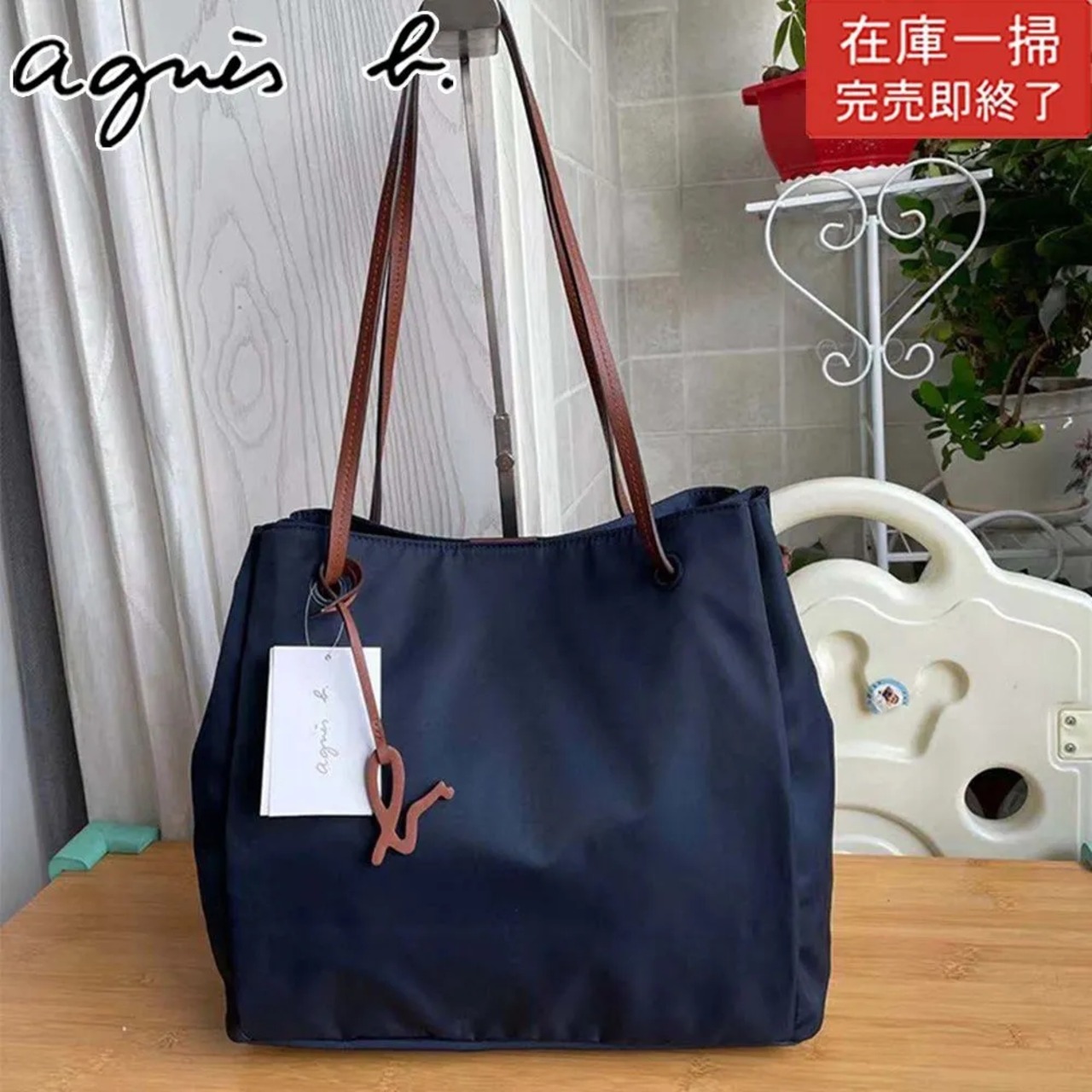 大人気 agnes b. アニエスベー ロゴ トートバッグ ショルダーバッグ ハンドバッグ ナイロンバッグ 両用 大容量 男女兼用 通勤 通学 ネイビー