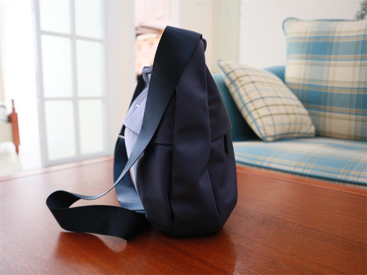 アニエスベー定番のナイロン素材を使用したショルダーバッグ。