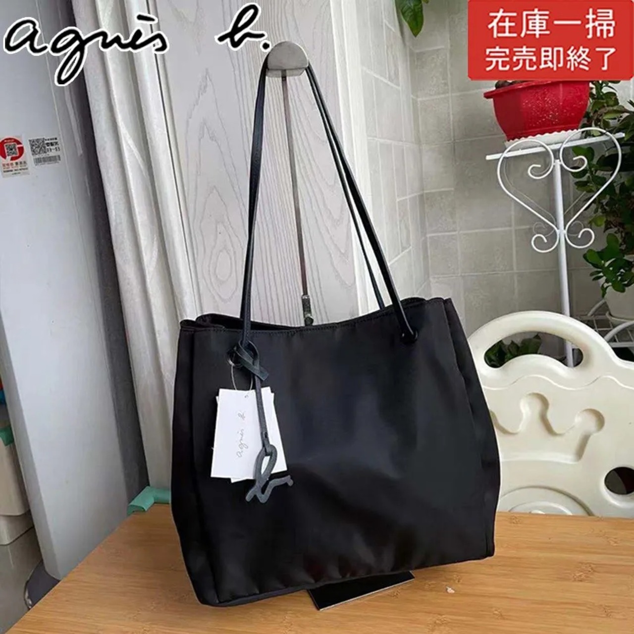 大人気 agnes b. アニエスベー ロゴ トートバッグ ショルダーバッグ ハンドバッグ ナイロンバッグ 両用 大容量 男女兼用 通勤 通学 ブラック