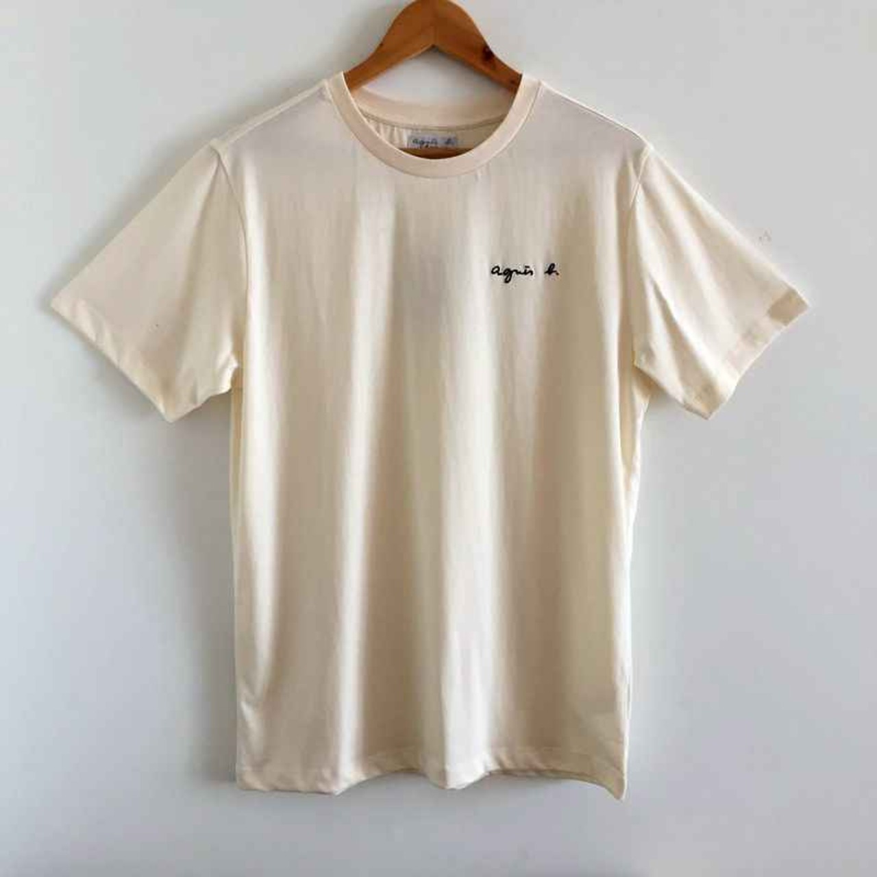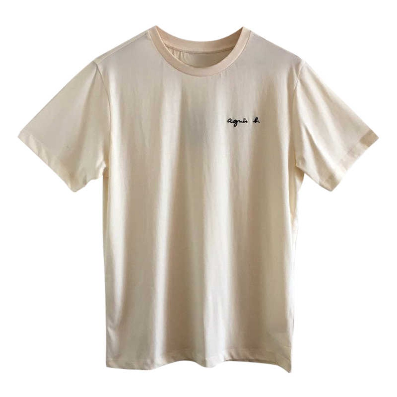 【在庫セール】agnes b. アニエスベー ロゴ 半袖 Tシャツ シンプル無地 カジュアル レディース クルーネック 綿 半袖 Tシャツ ベージュ