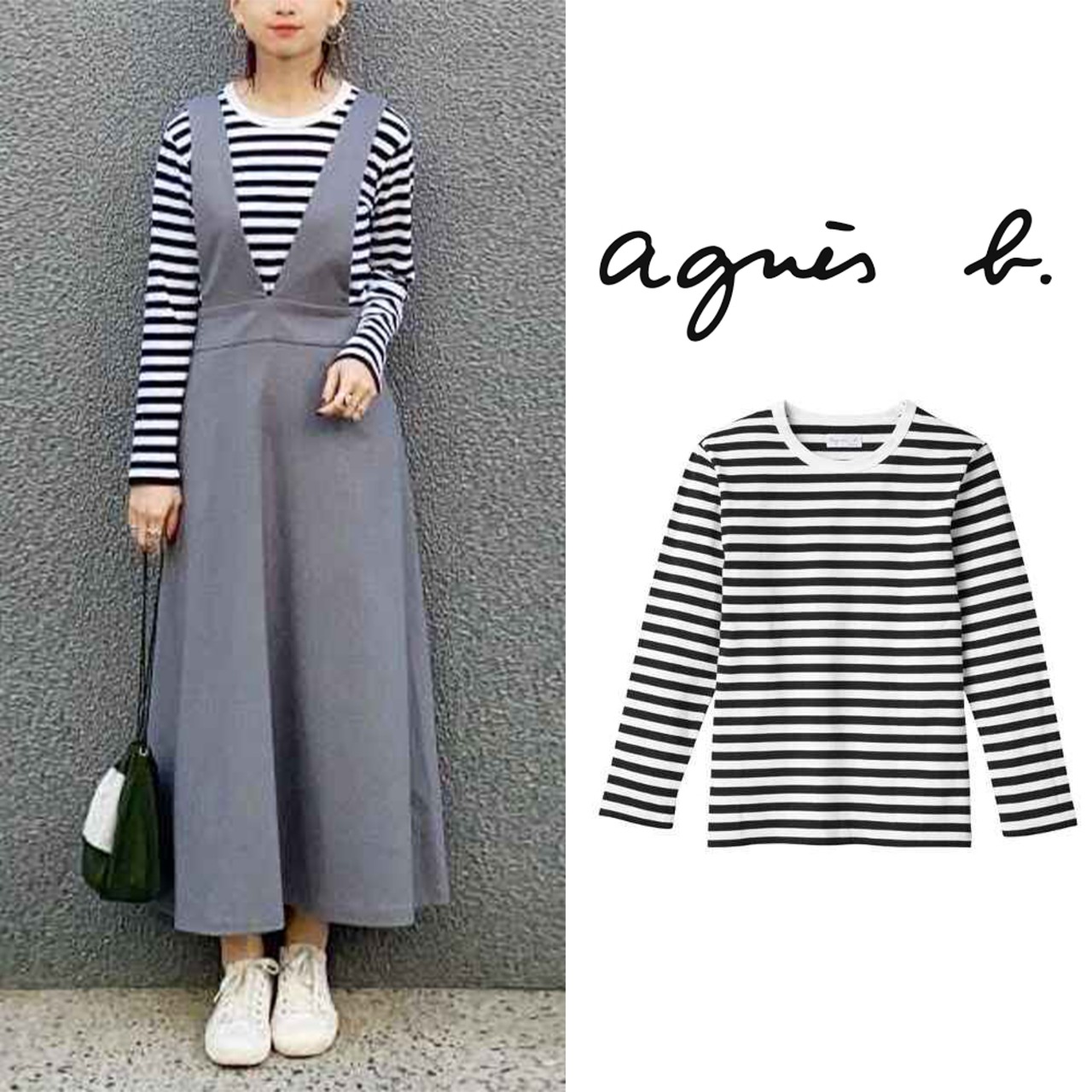【新品未使用】agnes b. アニエスベー 長袖 Tシャツ 白黒ストライプ カジュアル レディース 長袖 Tシャツ