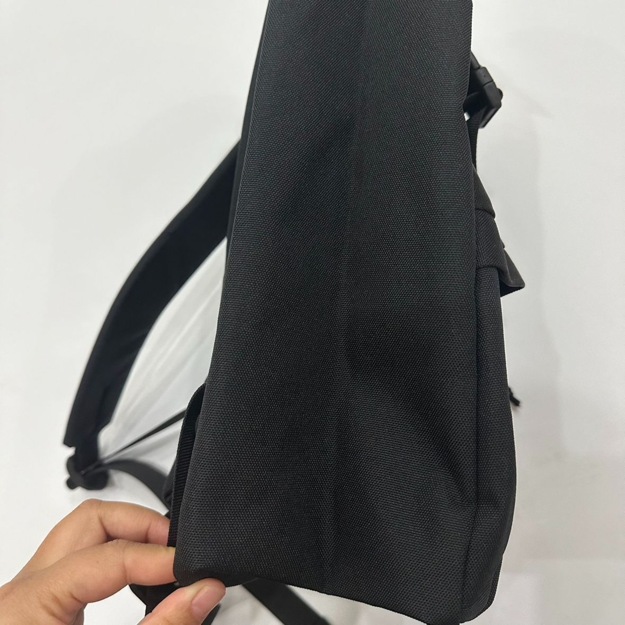 1990年代にラインナップされていた型の復刻モデルが採用されたデザインで、フロントにはマチ付きポケットx1、片側サイドにファスナーポケットx1、メイン収納部のフラップにファスナーポケットx1付きです。