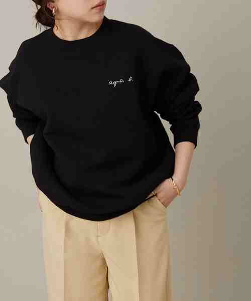 agnes b. paleesija アニエスベー スウェット ロゴ 春秋 クルーネック 長袖 シンプル無地 カジュアル レディース 長袖 ブラック ホワイト グレー 3色