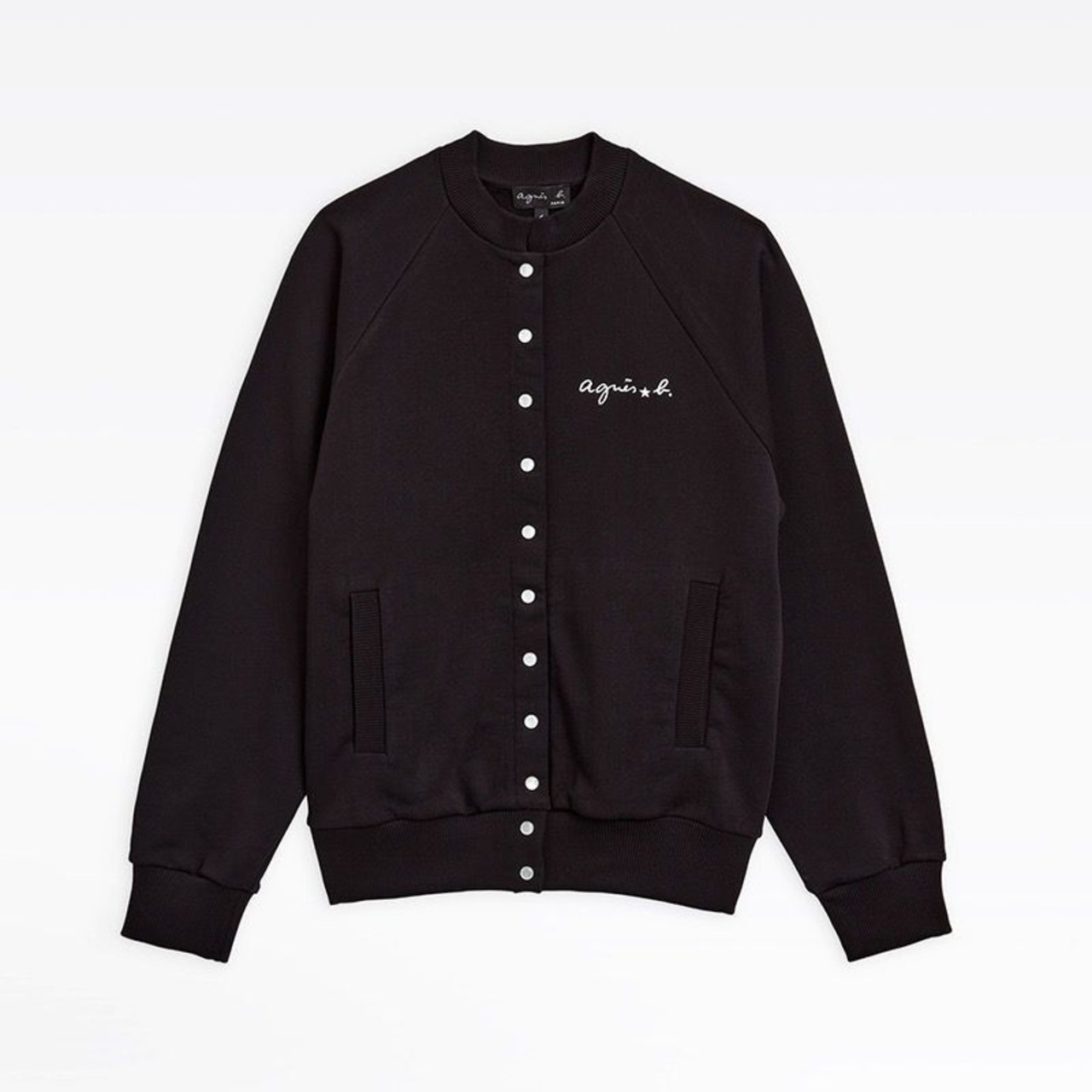 agnes b. paleesija アニエスベー カーディガンプレッション ロゴ 春秋 ボタンデザイン ショートコート シンプル無地 カジュアル レディース 長袖 ブラック