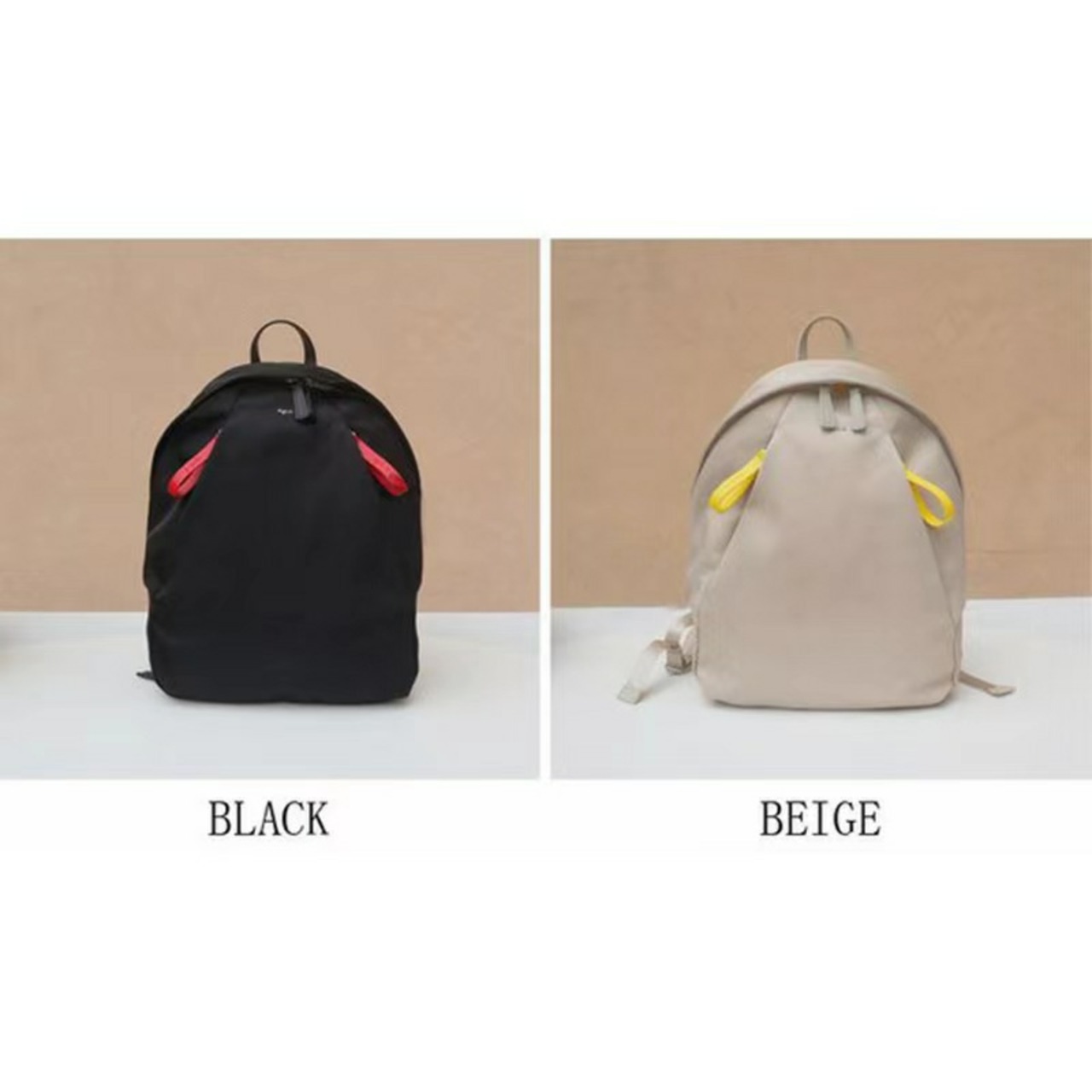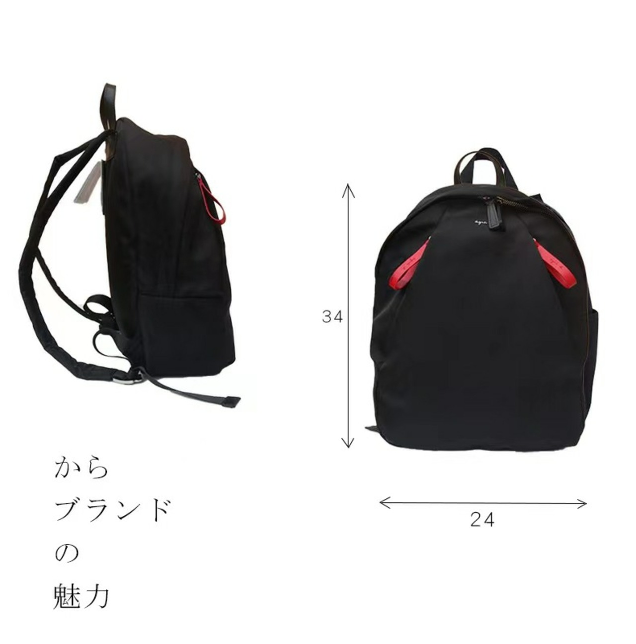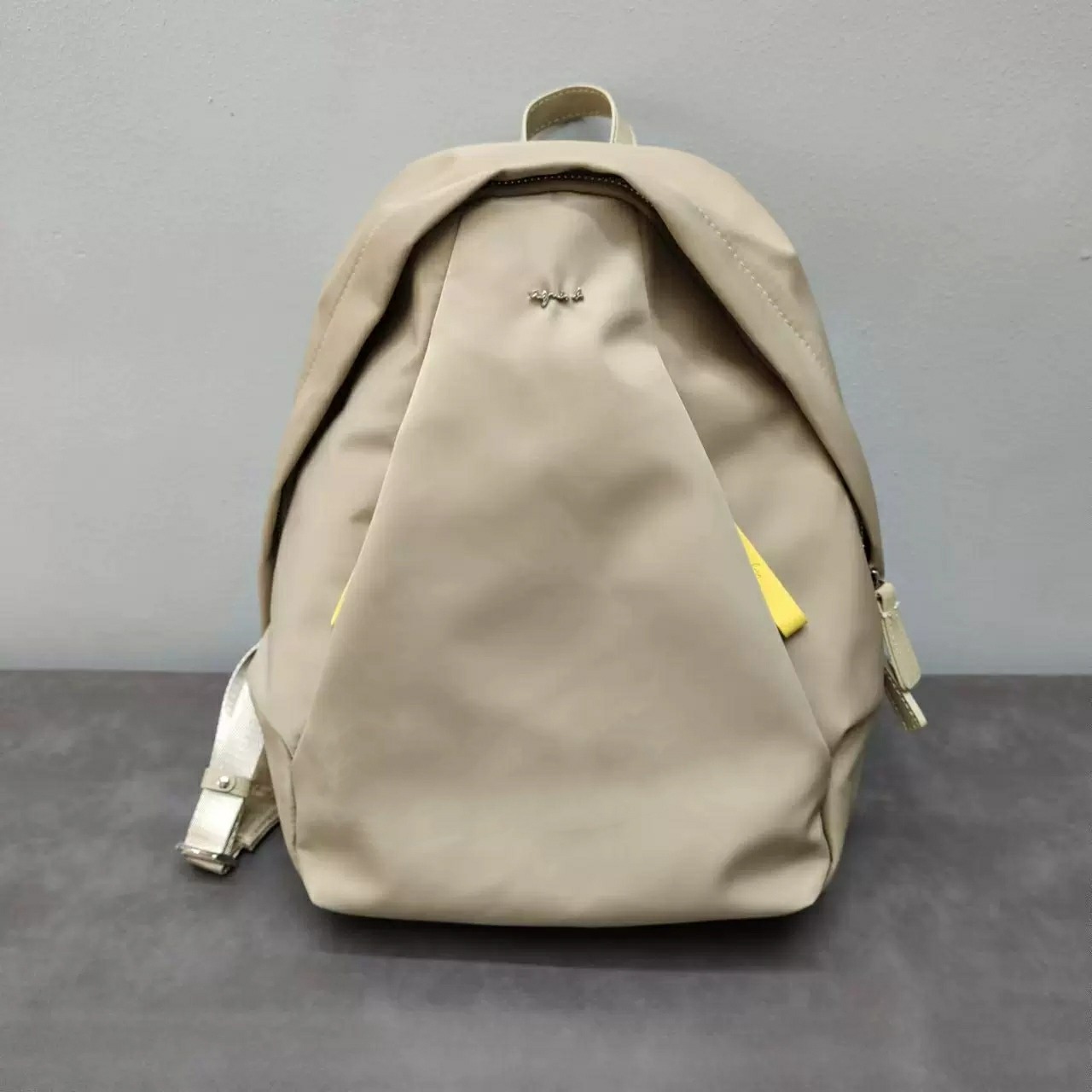 アニエスベーらしいシンプルデザインでありながら、機能的で、充実したポケットと、カラーコンビがポインのバックパック。アニエスベー本人が大変気に入っている定番素材のナイロン素材を使用。