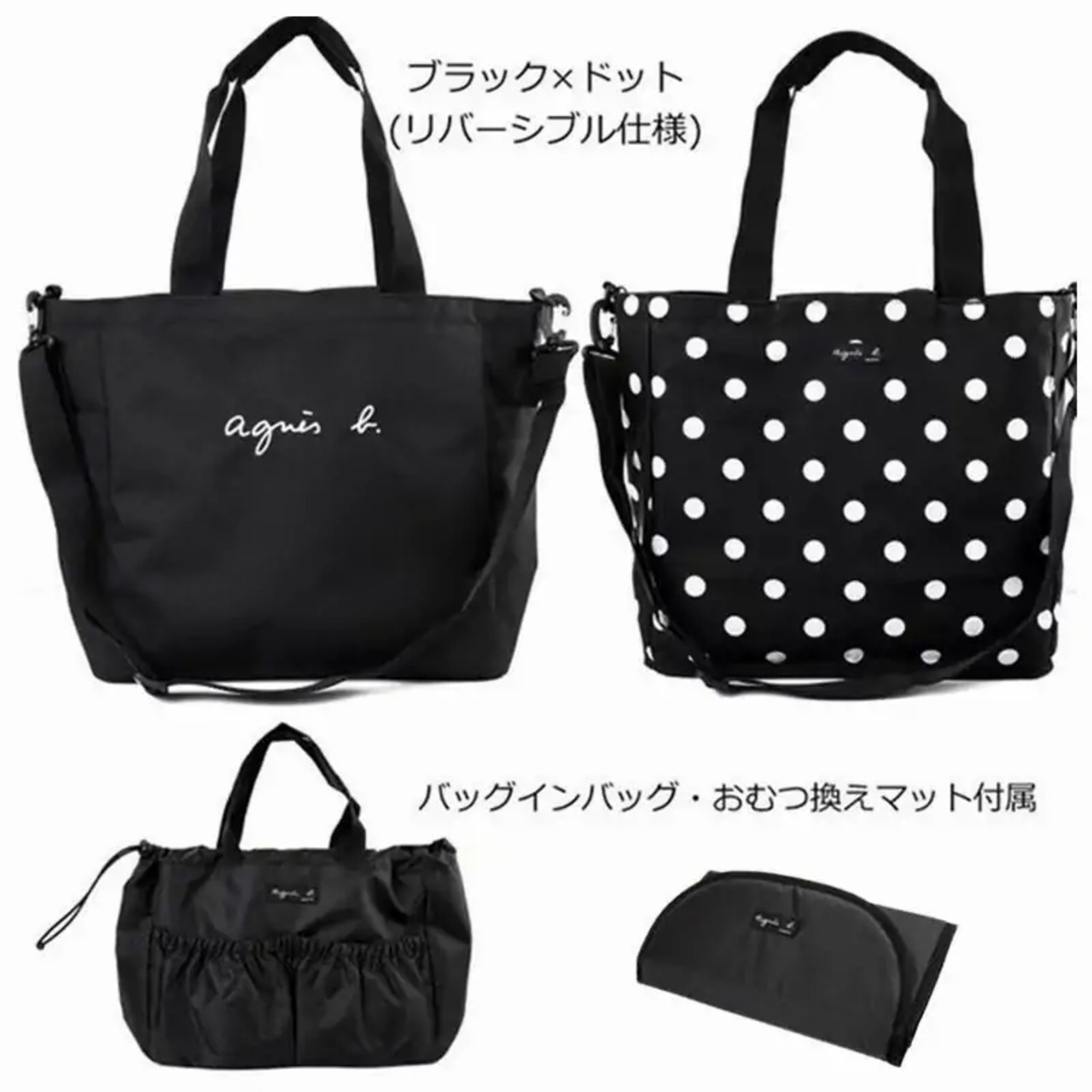 agnes b マザーズバッグ New ペアレンツバッグアニエスベー 2wayトートバッグリュック 両面使用可能 3点セット
