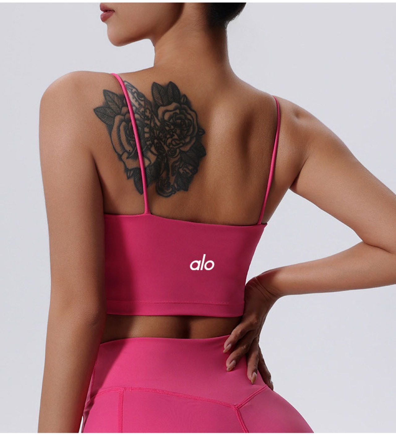 Alo Yoga アロヨガ ライトサポート スポーツブラ 揺れない クロスバック サポートブラ ヨガウェア 美胸 サポート力抜群 サポートブラ ヨガ ランニング ジョギング ダンス グリーン ピンク