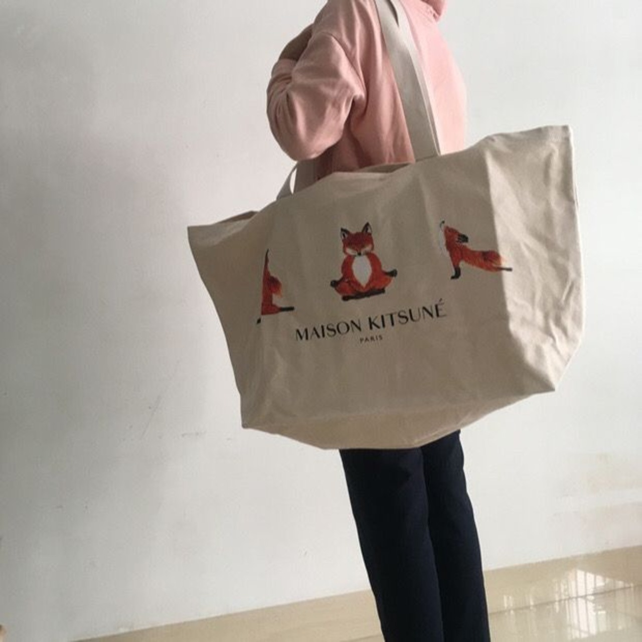 MAISON KITSUNE メゾンキツネ トートバッグ 狐のイラスト おしゃれ バッグ カジュアル デイリー 旅行 通勤 可愛い ホワイト