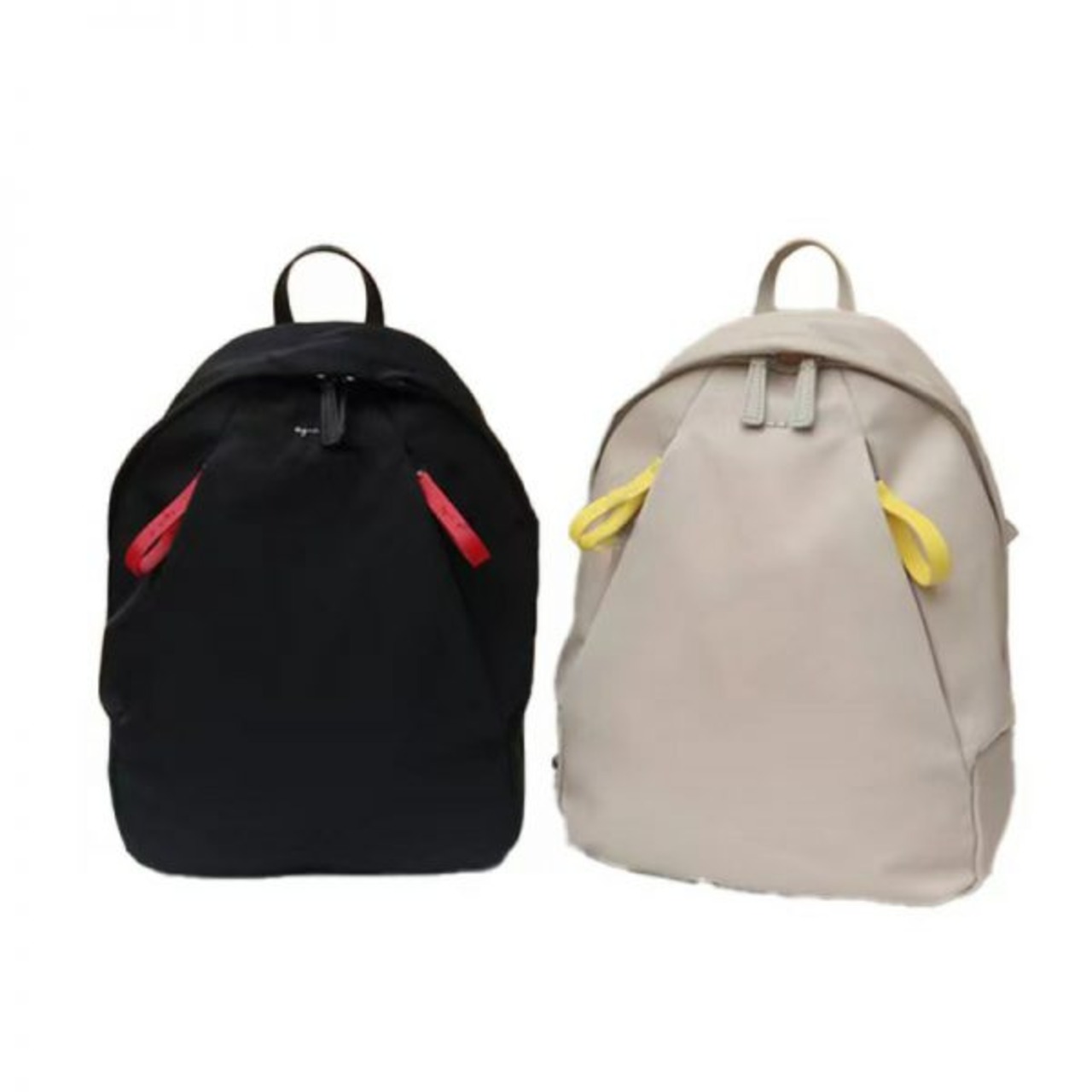 アニエスベーらしいシンプルデザインでありながら、機能的で、充実したポケットと、カラーコンビがポインのバックパック。アニエスベー本人が大変気に入っている定番素材のナイロン素材を使用。