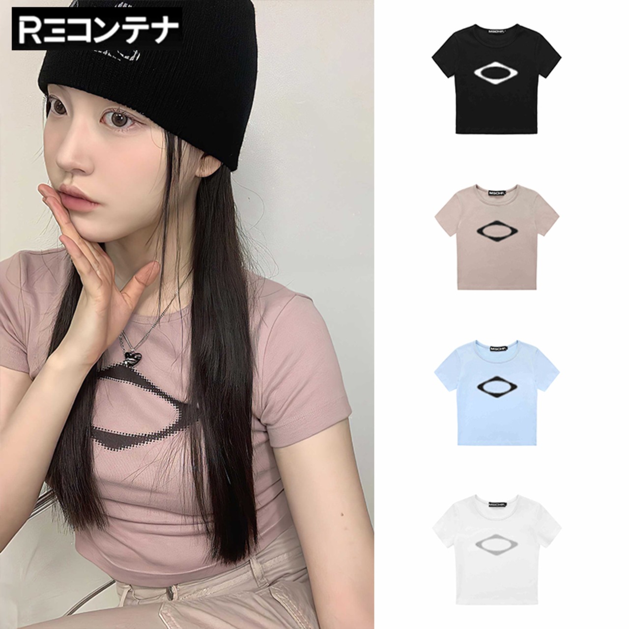 REコンテナ リコンテナ Tシャツ 韓国 ファッション 人気 レディース 春夏 ピンク ブラック ベージュ ブルー ホワイト