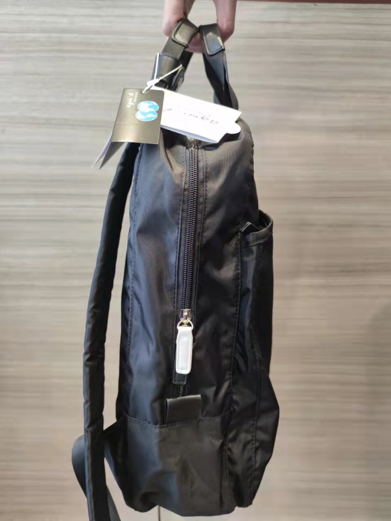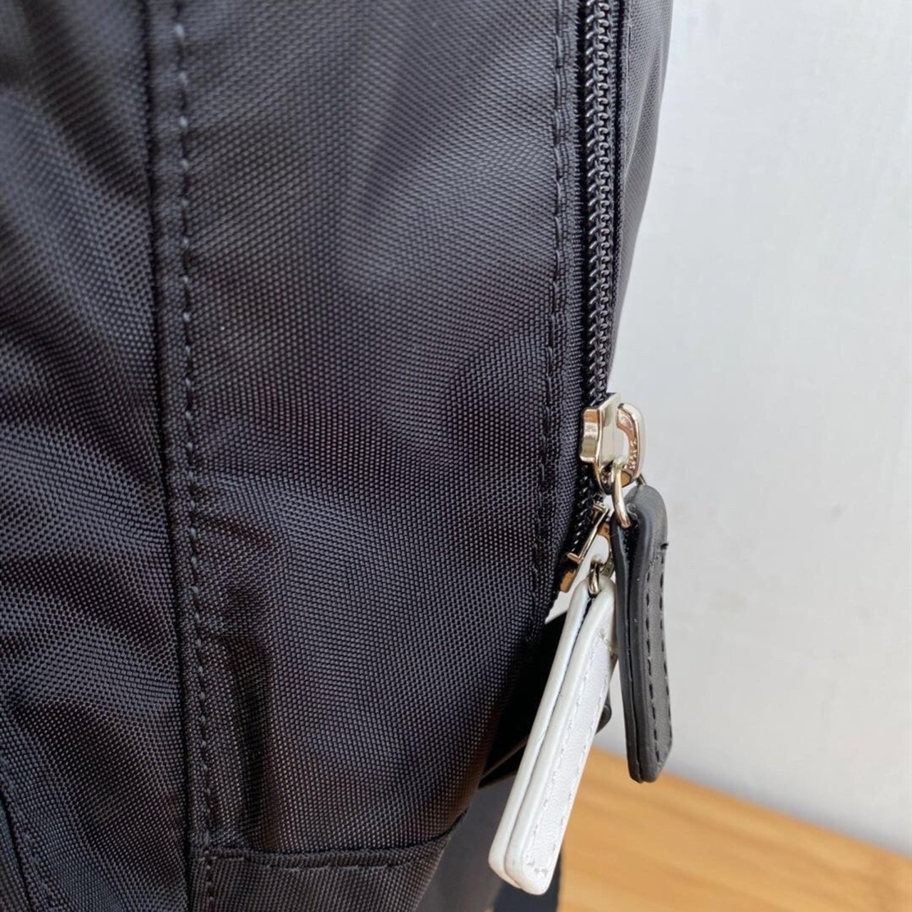 汚れがつきにくく、新品のような美しさが続く撥水効果のあるテフロン加工を施したハンドル付きのナイロンバックパック。こちらは、ユニセックスでお使いいただけるデザインです。アニエスベーのロゴが入ったフロントのレザーパーツとファスナーの引手の片方は配色使いにし、ポイントに。ご自身へのご褒美や大切な方へのプレゼントにも最適な逸品です。