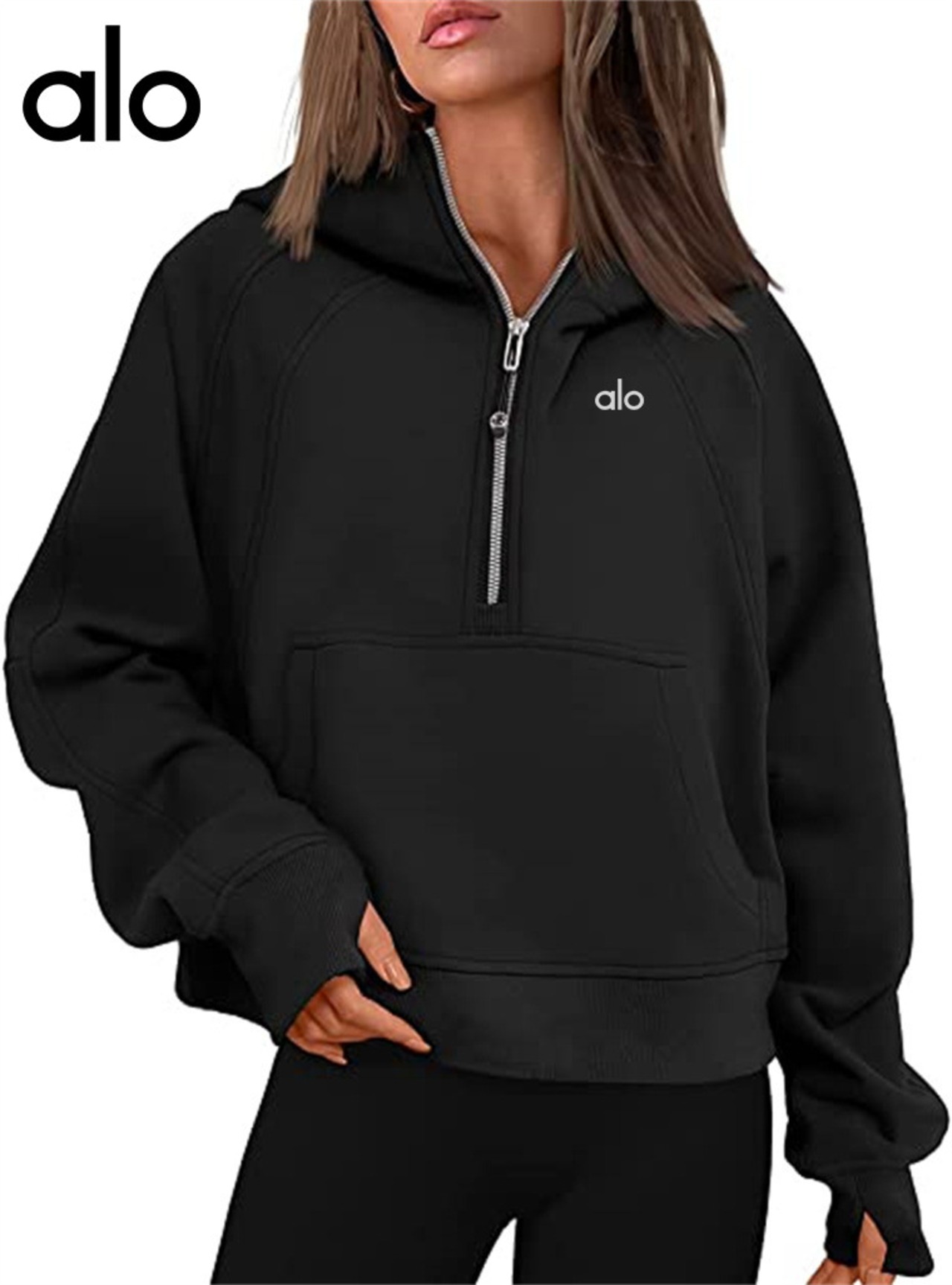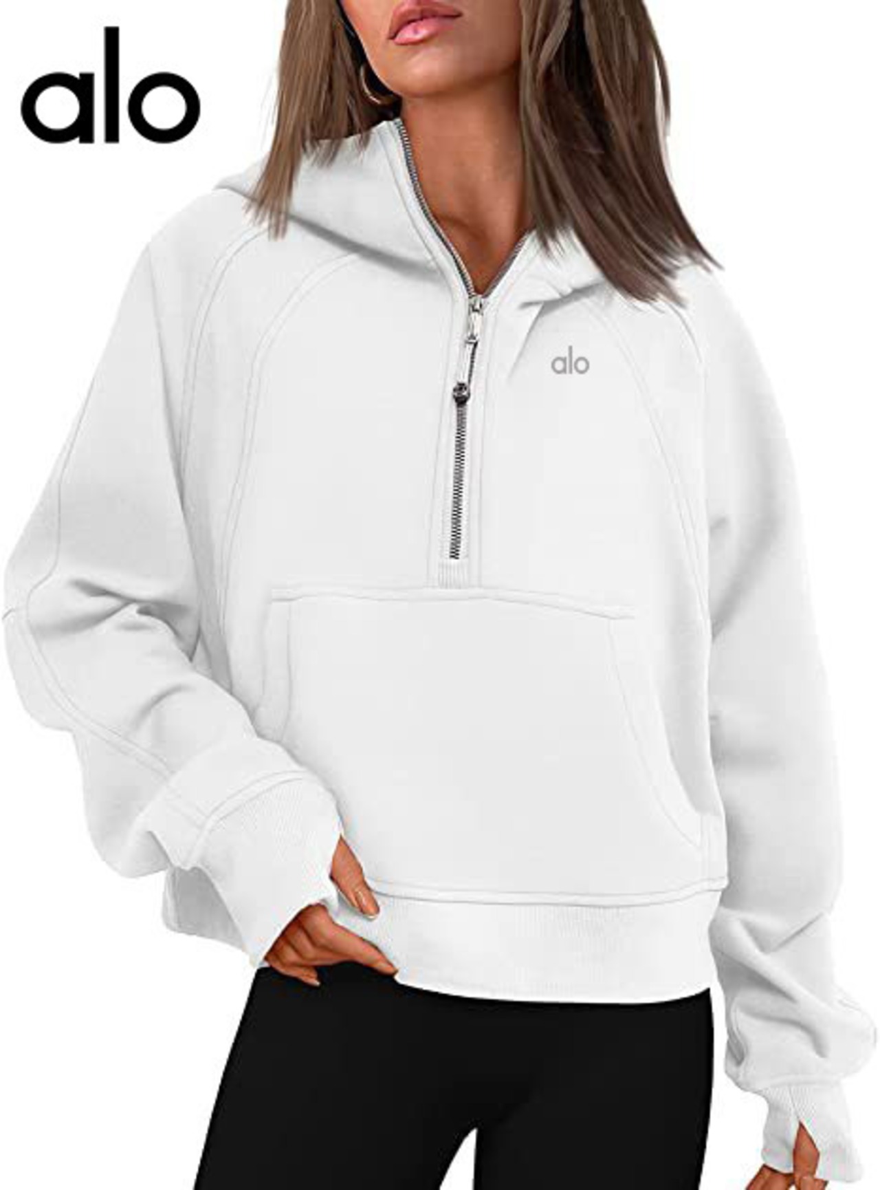 Alo Yoga アローヨガ パーカー レディース 裹起毛 ゆったり スウェット ハーフジップ スポーツ 旅行 ブラック ホワイト グリーン ブルー ピンク