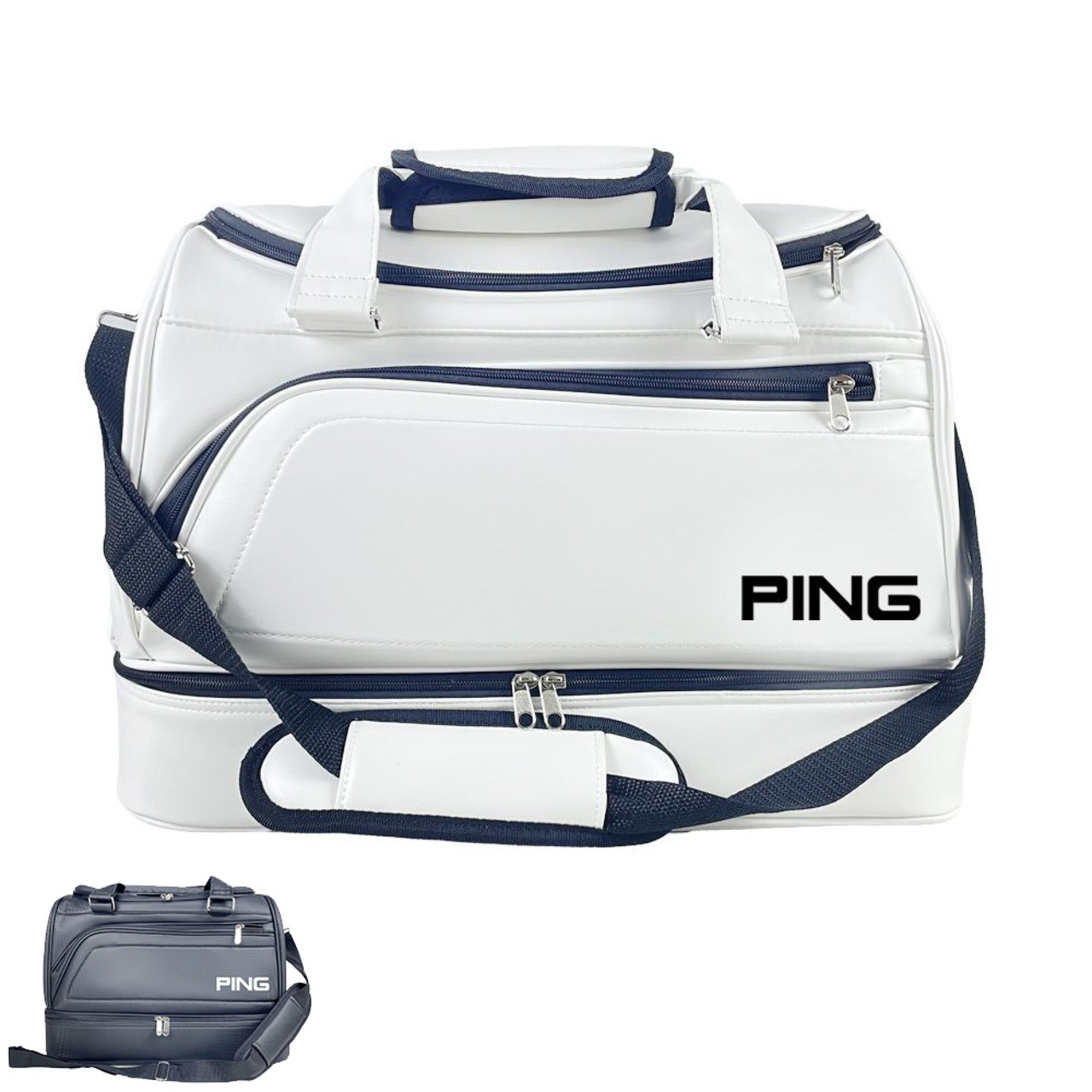大人気 PING Golf ゴルフ ボストンバッグ ゴルフ服バッグ ゴルフシューズ 大容量 収納ポケット付き 男女兼用 ホワイトブラック