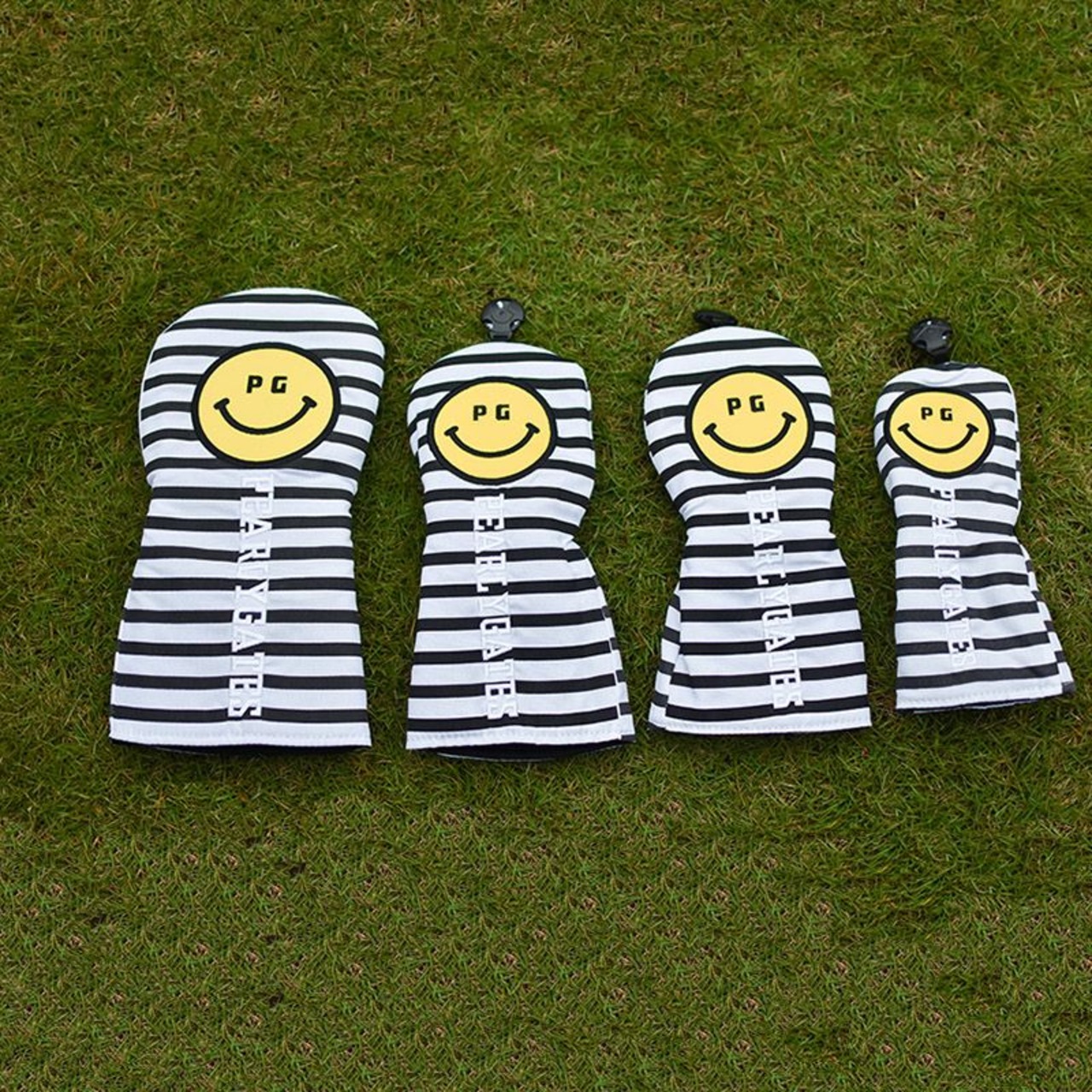 大人気 PEARLYGATES パーリーゲイツゴルフ クラブ ヘッドカバー 4点セット 1+3+5+UT アイアン用 ドライバー用 ゴルフヘッドカバー スマイル ブラック×ホワイト
