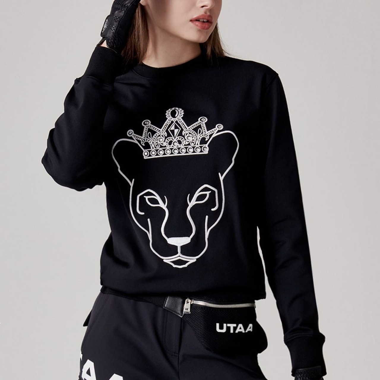 UTAA ユタ ゴルフ ゴルフウェア ニット 長いセーター レディース 刺繍 スウェット 防風 長袖 暖かい ブラック ホワイト レッド 3色