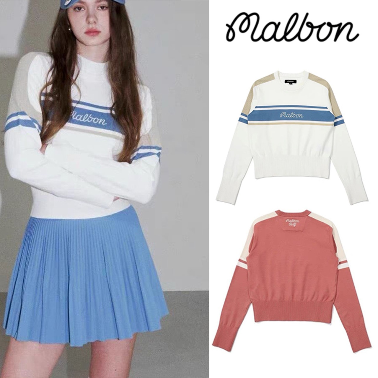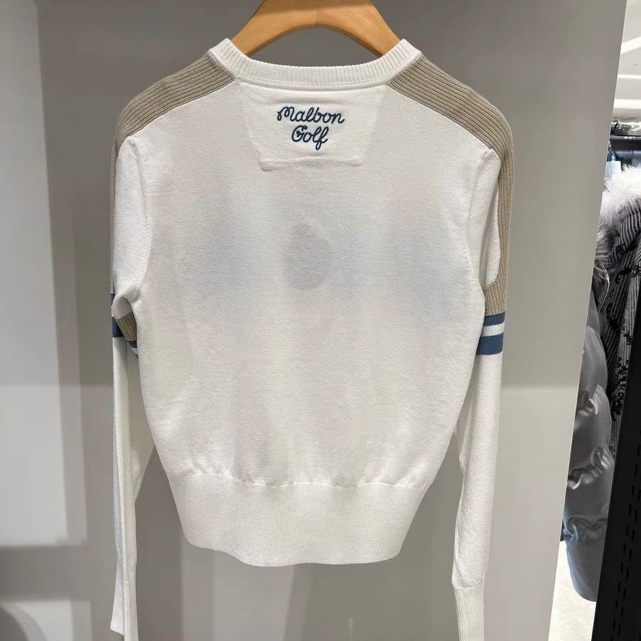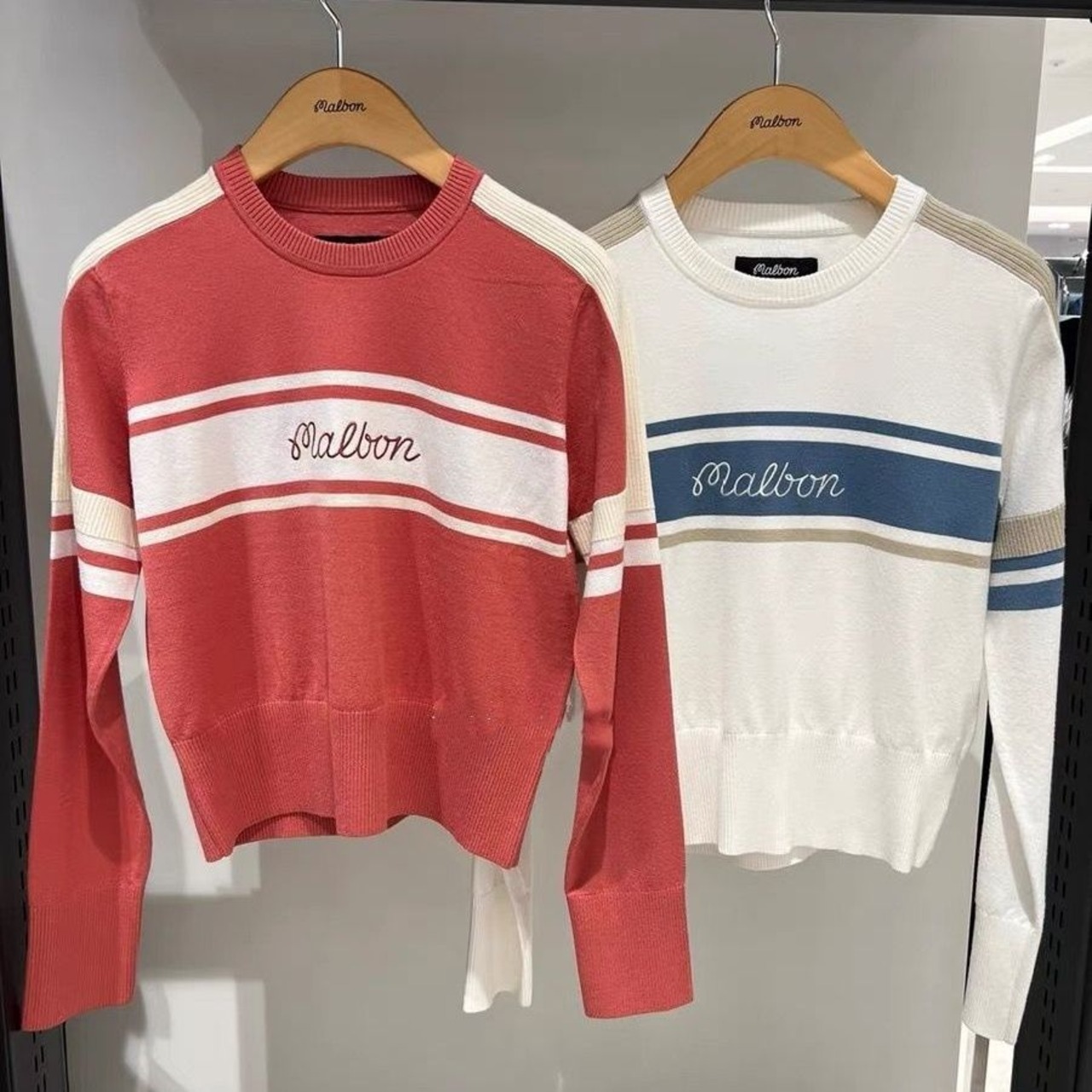 malbon golf マルボンゴルフ セーター 長袖 新作 ゴルフウェア 男女兼用 スポーツ カジュアル 防寒 暖かい ホワイト オレンジ