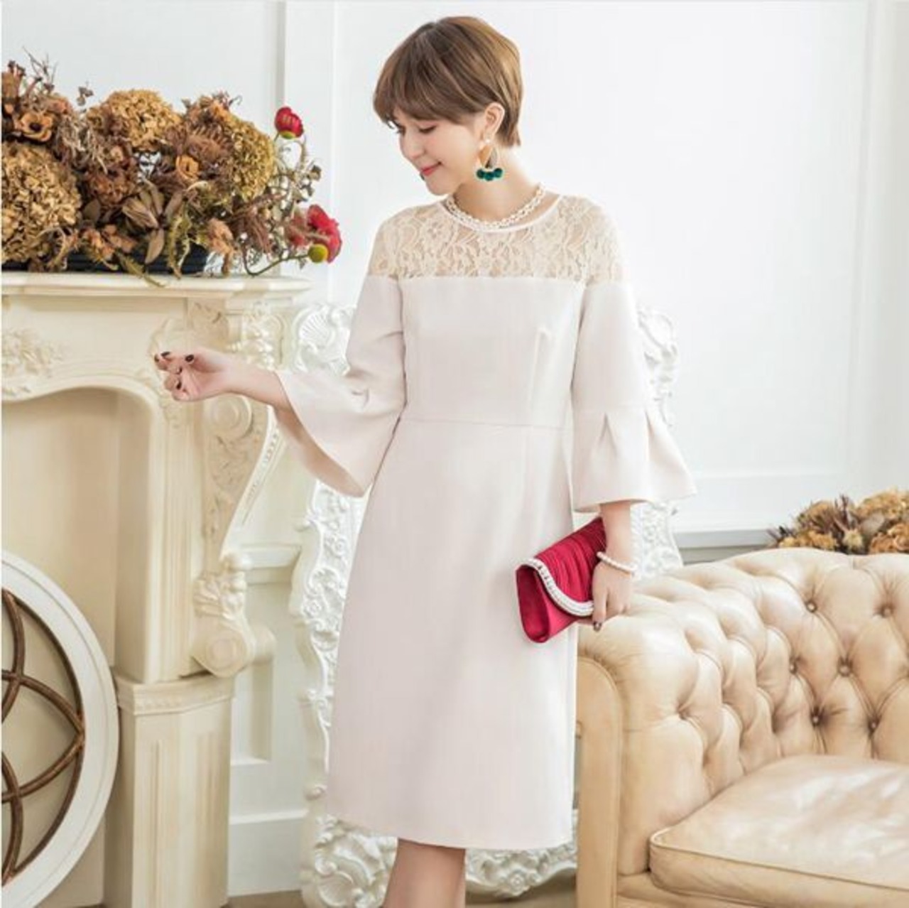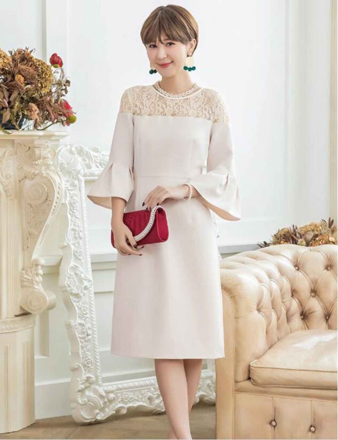 ドレス 結婚式 パーティードレス 結婚式ドレス ワンピース フレアスリーブ 七分袖 フレア袖 ケープ袖 タイトワンピース 膝丈 ミディアム丈 レディース 二次会 卒業式 入学式sff8