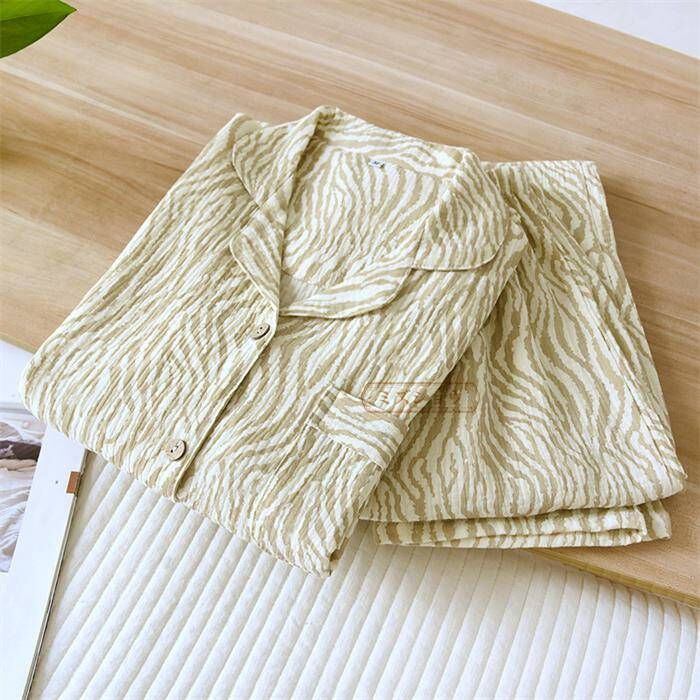 即購入OK パジャマ レディース ガーゼ ルームウェア 長袖 トップス 前開き ロングパンツ 部屋着 セットアップ 2点セット 寝間着 総柄 春 秋 冬 寝巻き 女性 上下セット 大人 快適 liangyi34☆DZ10