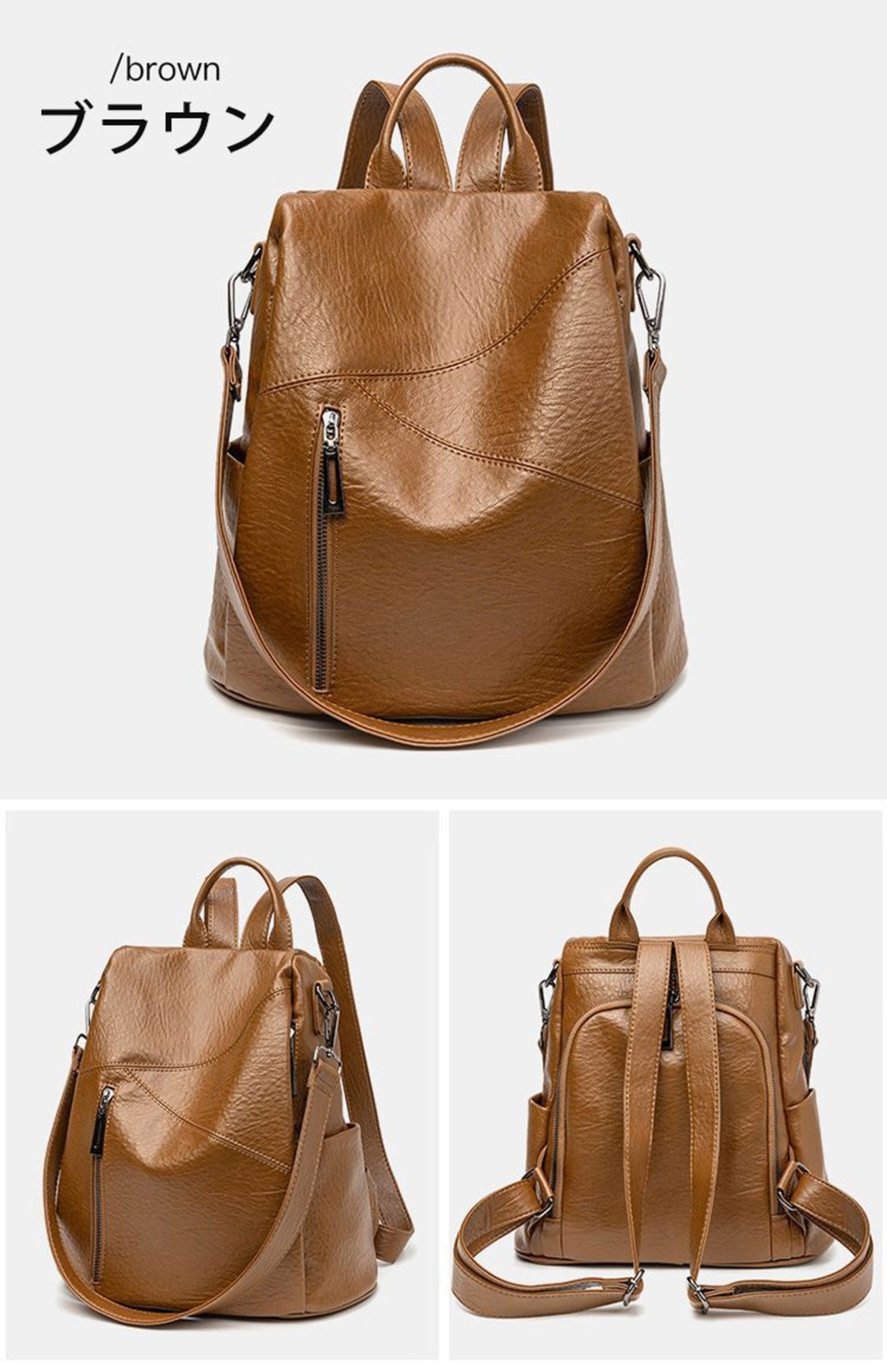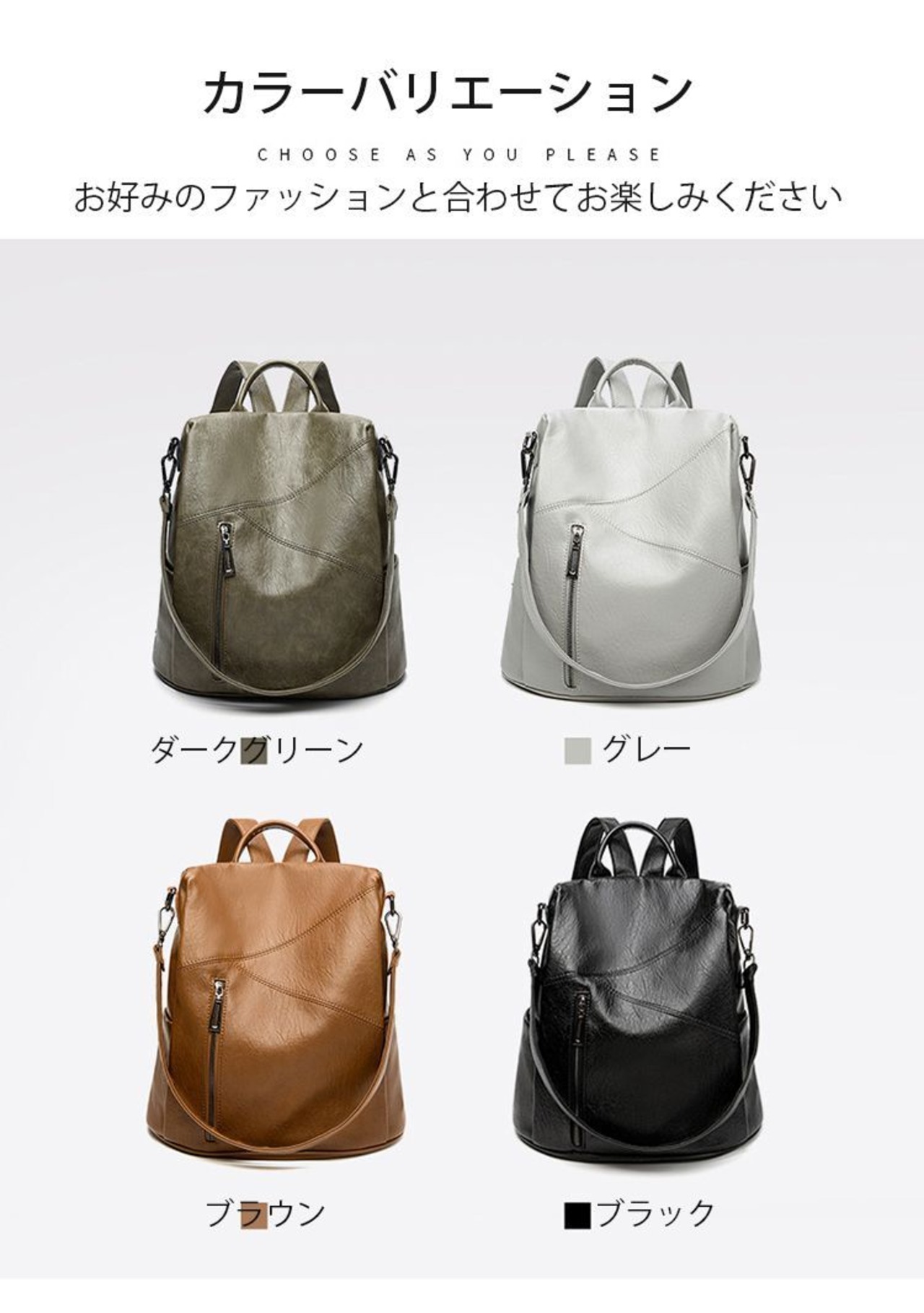 ・上質な高品質PUレザー素材を採用。手触りがよく、耐久性に強くて丈夫なリュック。撥水仕様のため雨の日も安心してご使用いただけます。上品でエレガントなリュックです。