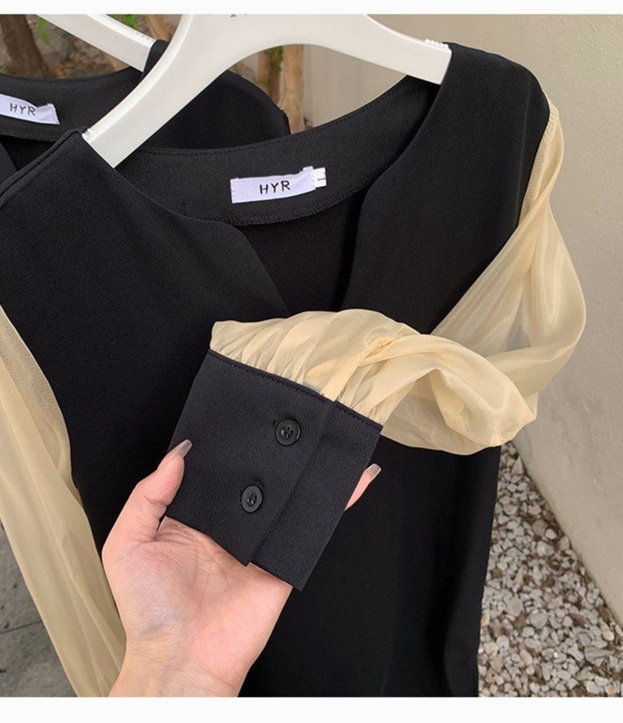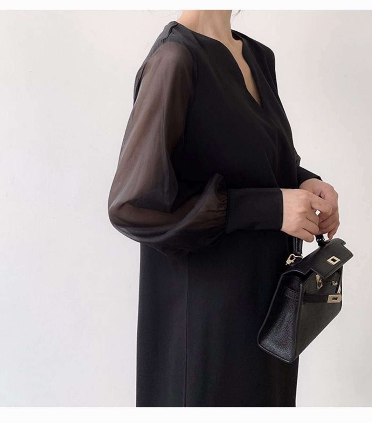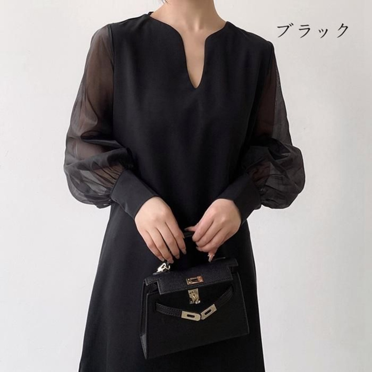 ワンピース シフォンスリーブ ワンピース 透け感 シアー スリットネック 長袖 ワンピース 通勤 レディース おしゃれ ブラック 春夏新作skwhyr02