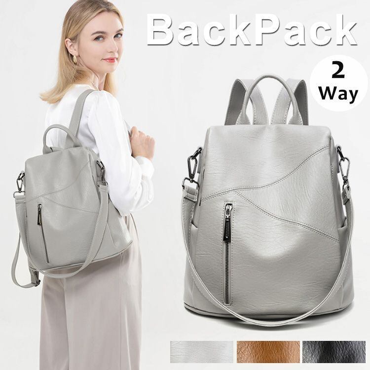 ・上質な高品質PUレザー素材を採用。手触りがよく、耐久性に強くて丈夫なリュック。撥水仕様のため雨の日も安心してご使用いただけます。上品でエレガントなリュックです。