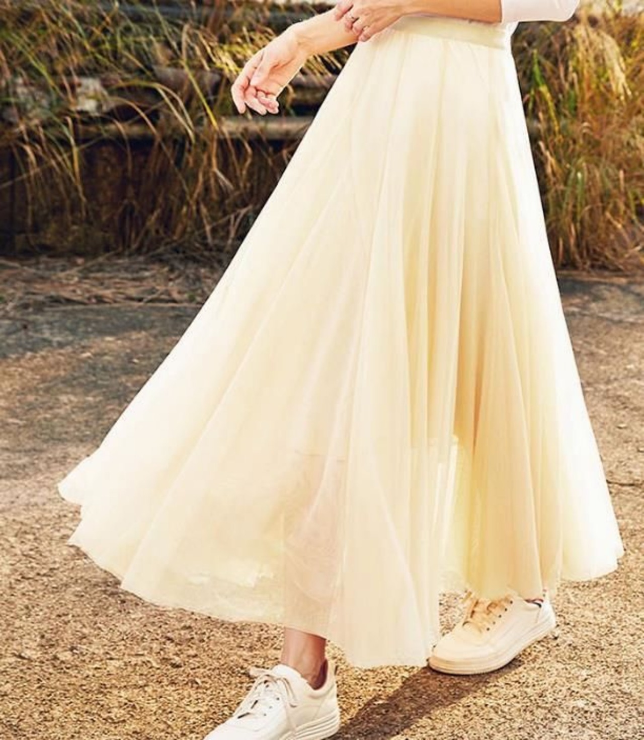 未使用 スカート チュールスカート マキシ ロングスカート フレアスカート ウエストゴム ボトムス ファッション 体型カバー レディース きれいめ カジュアル 春夏cbrx774