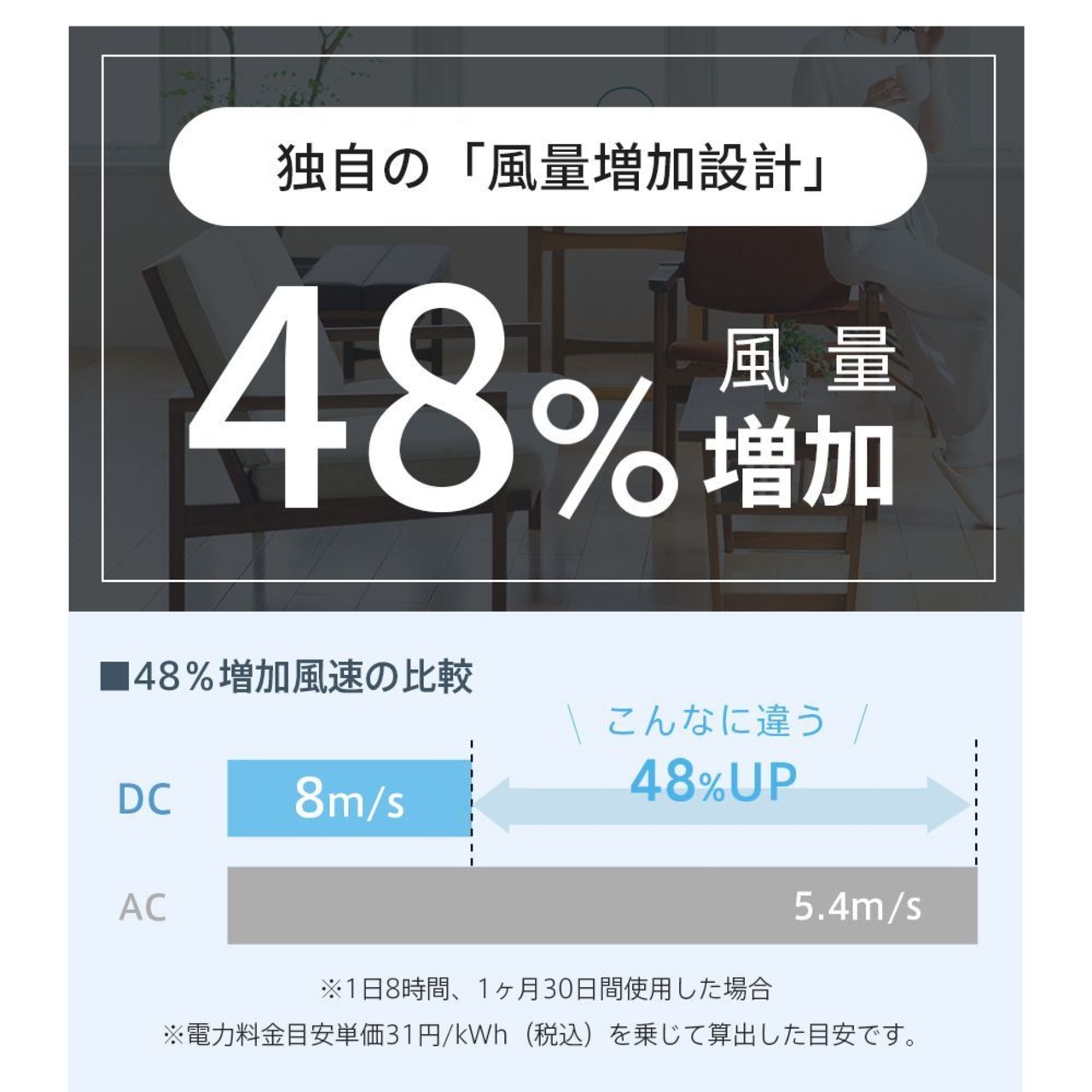 ナイトライトをつけたままタイマー設定が可能です。これにより、入眠まで心地よい明かりと風に包まれてリラックスでき、設定時間になると自動でファンがオフになるため、消し忘れの心配がありません。タイマーによる無駄な運転の抑制と、ナイトライトによる安心感のある空間演出は、電気代の節約にもつながります。