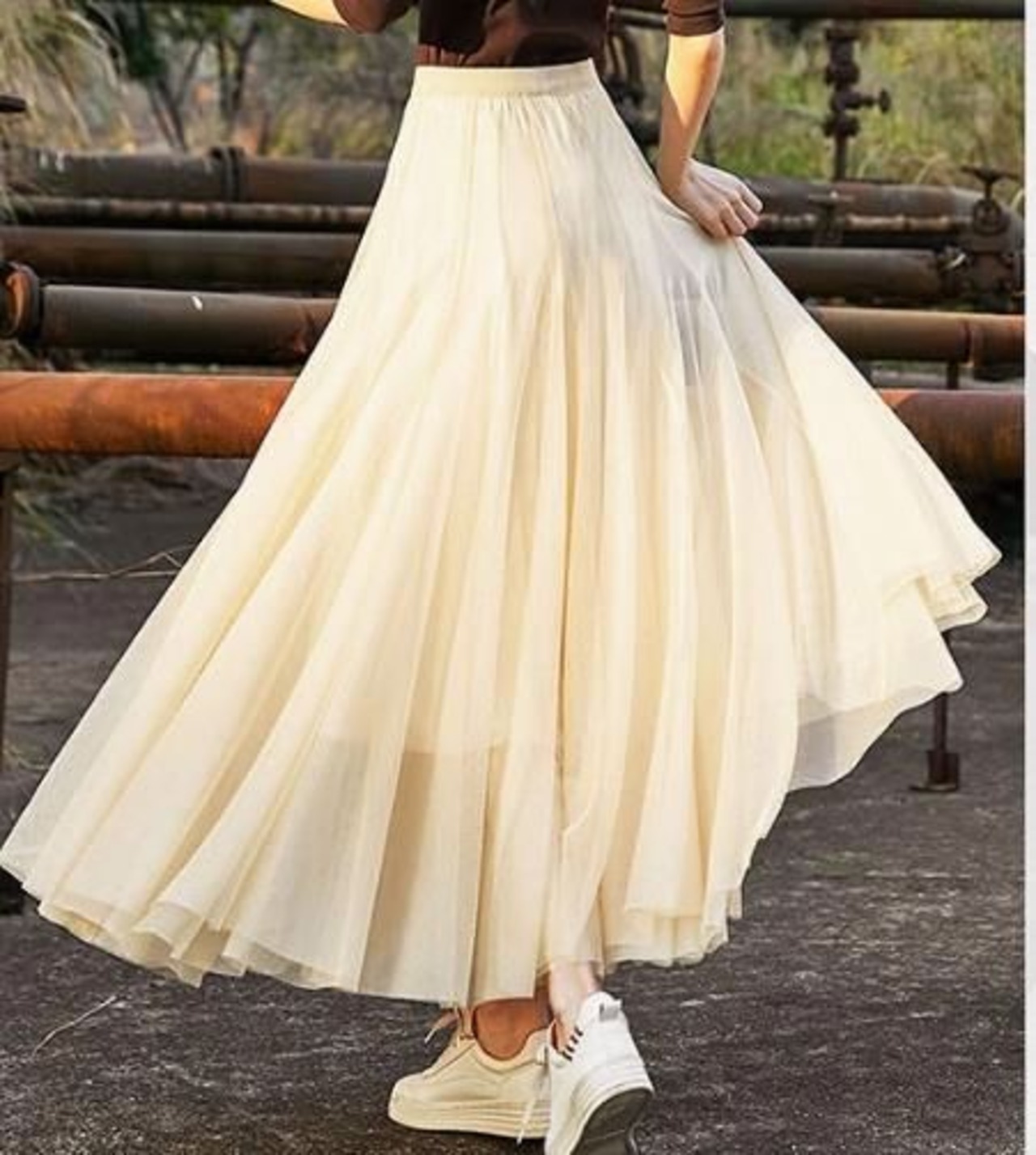 スカート チュールスカート マキシ ロングスカート フレアスカート ウエストゴム ボトムス ファッション 体型カバー レディース きれいめ カジュアル 春夏