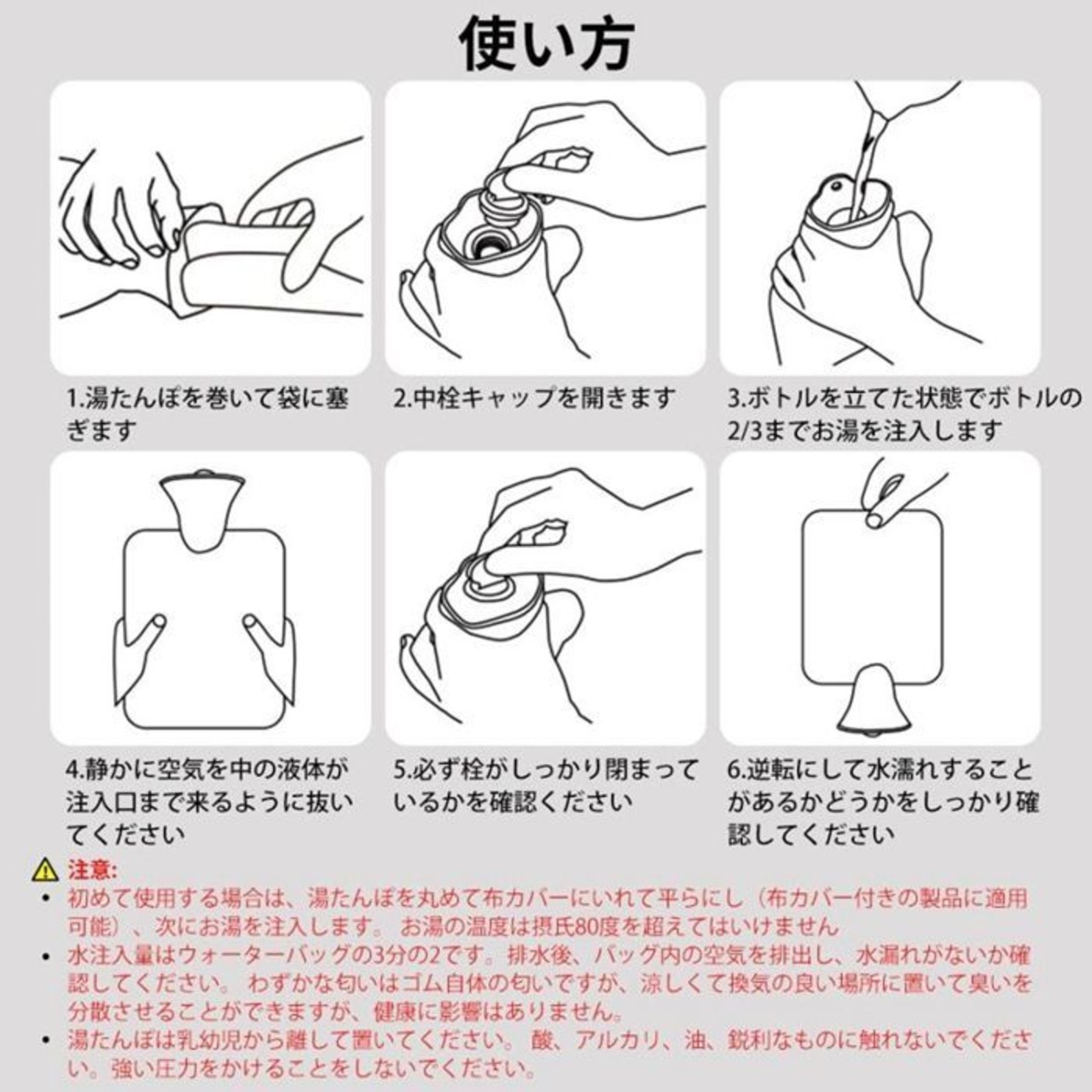 1、湯たんぽ本体がカバーに入った状態で沸騰したお湯を少し冷ましてから注ぎます(100℃熱湯ご遠慮ください)。