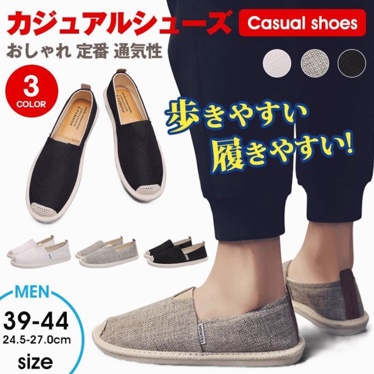 スリッポン カジュアルシューズ メンズ メンズシューズ フラットシューズ 無地 シューズ 靴 カジュアル シンプル おしゃれ 定番 通気性 履きやすい 歩きやすい 通勤 通学 ファッション 夏