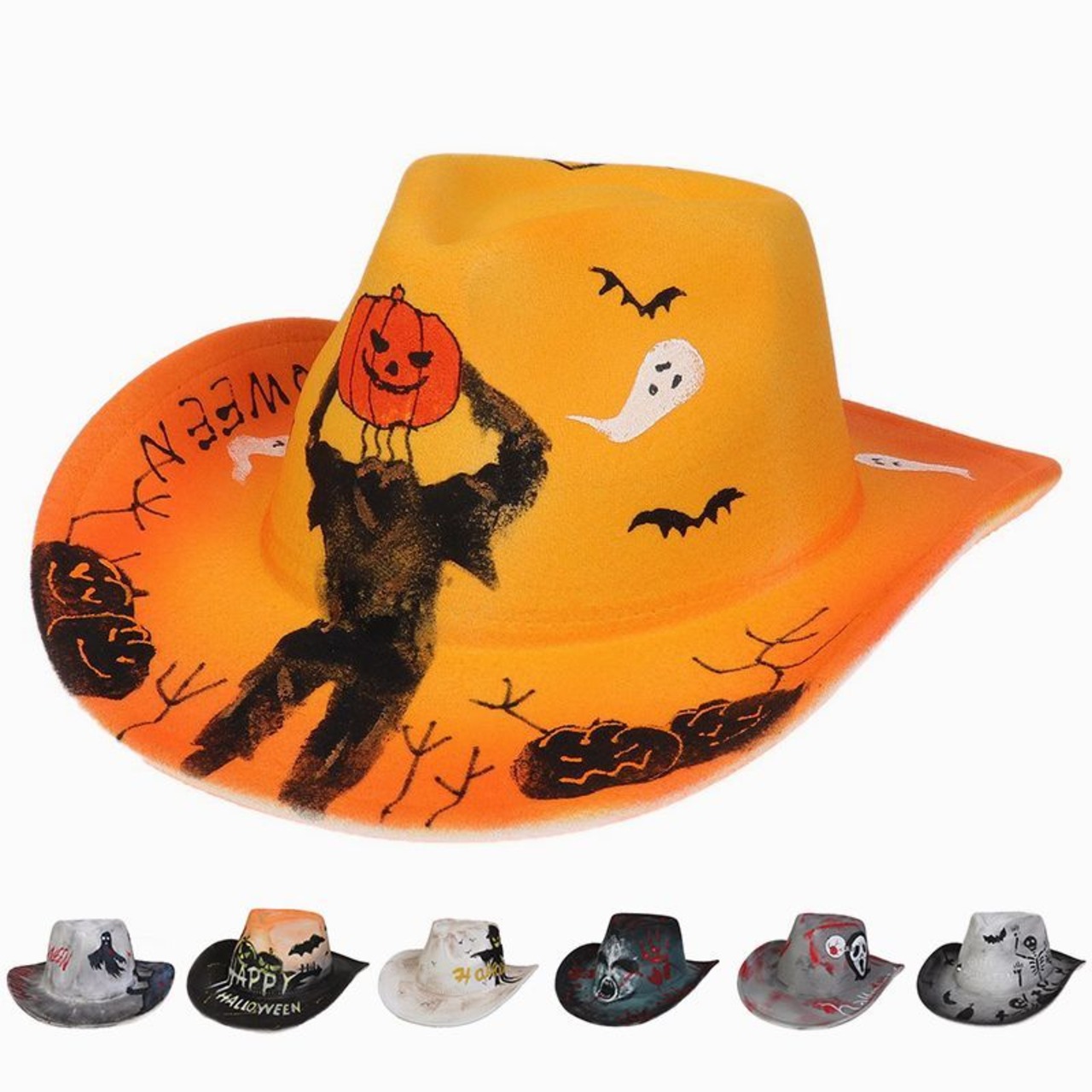 ハロウィン 帽子 カウボーイ ハット パンプキン スケルトン 面白いハロウィンデコレーション カボチャ かぼちゃ 帽子 男女兼用 大人用 ユニセックス おもしろ レディース メンズyingfen01