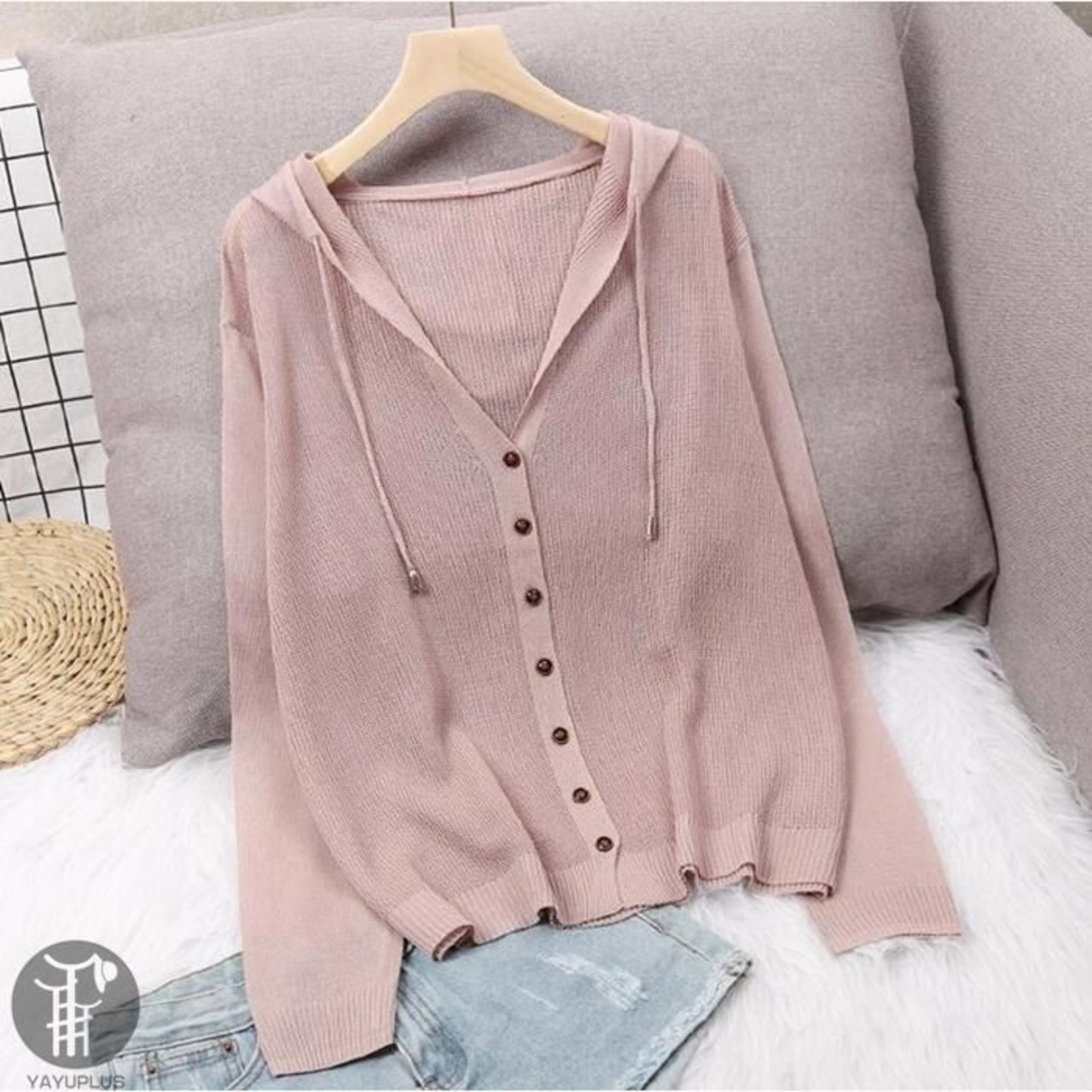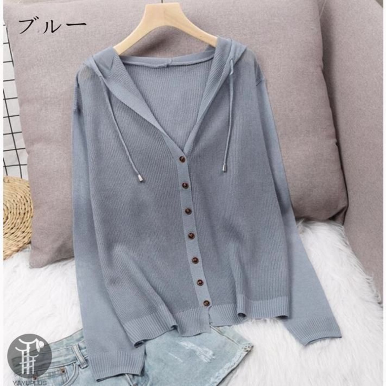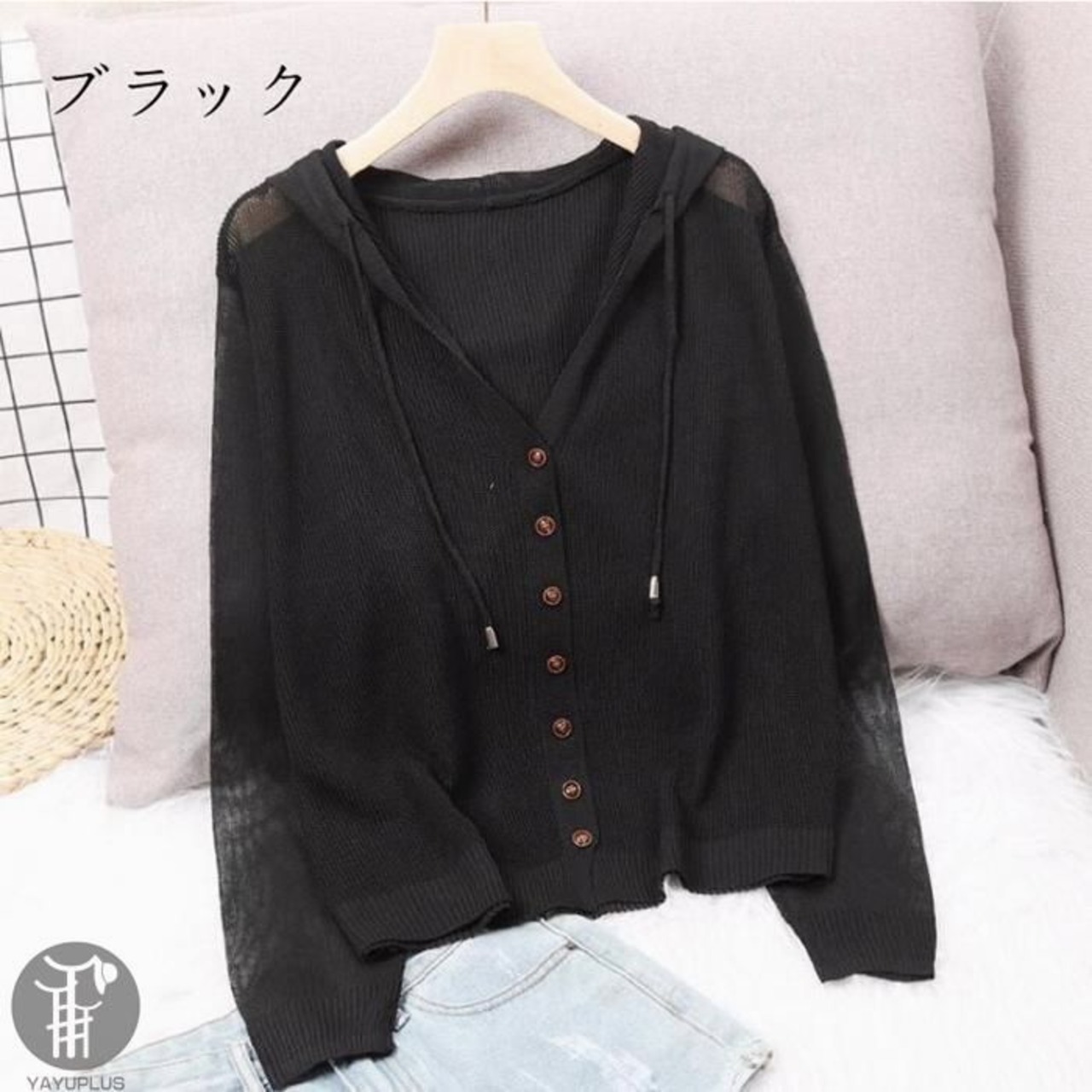 カーディガン フード付きカーディガン ニット 薄手 ボタン 羽織り UVカット 紫外線対策 エアコン対策 無地 長袖 春 夏 フェミニン カジュアル トップス