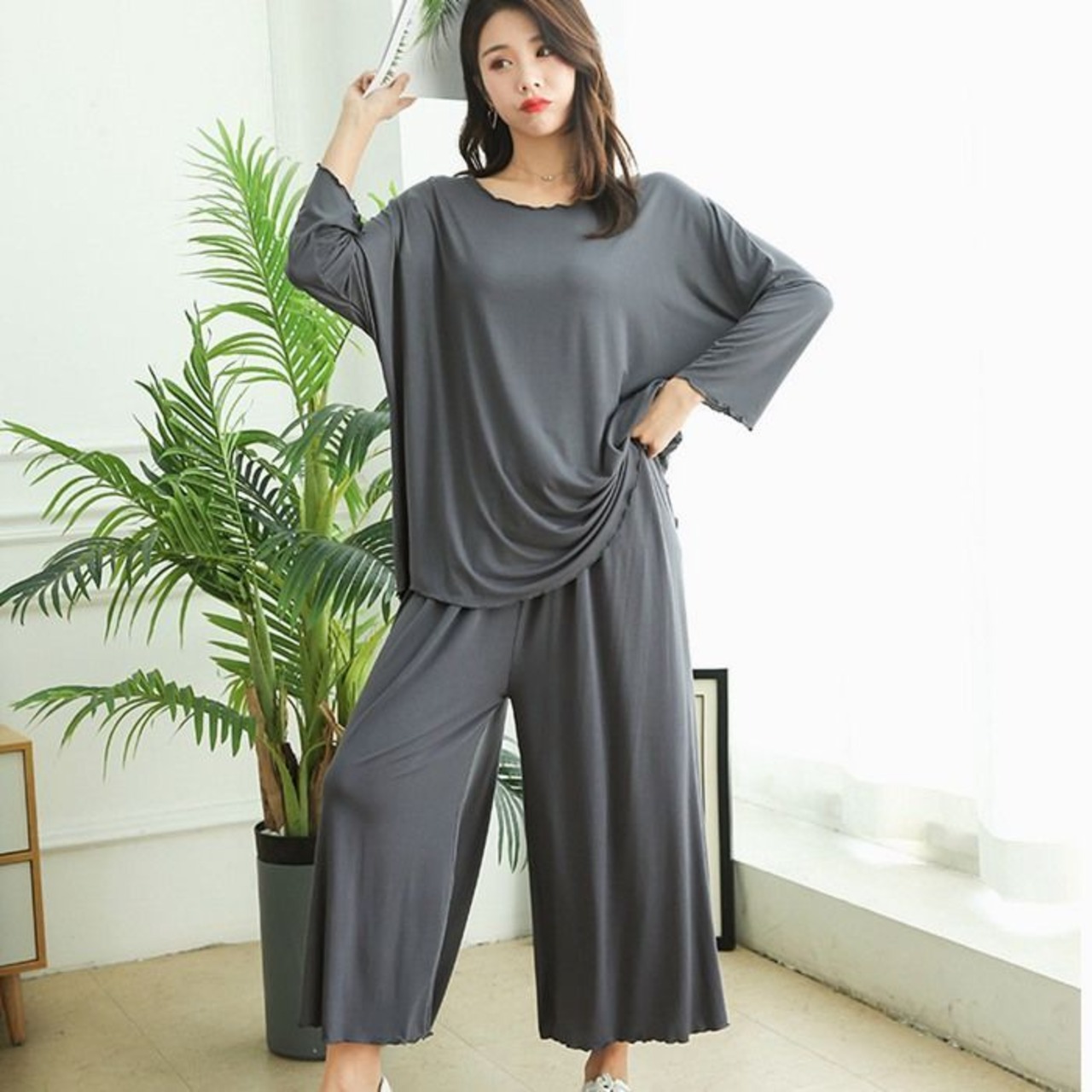 ルームウェア レディース 部屋着 長袖 ズボン 大きいサイズ パジャマ ルームウエアー セットアップ 上下セット 柔らか 寝間着 春 夏feiyu01
