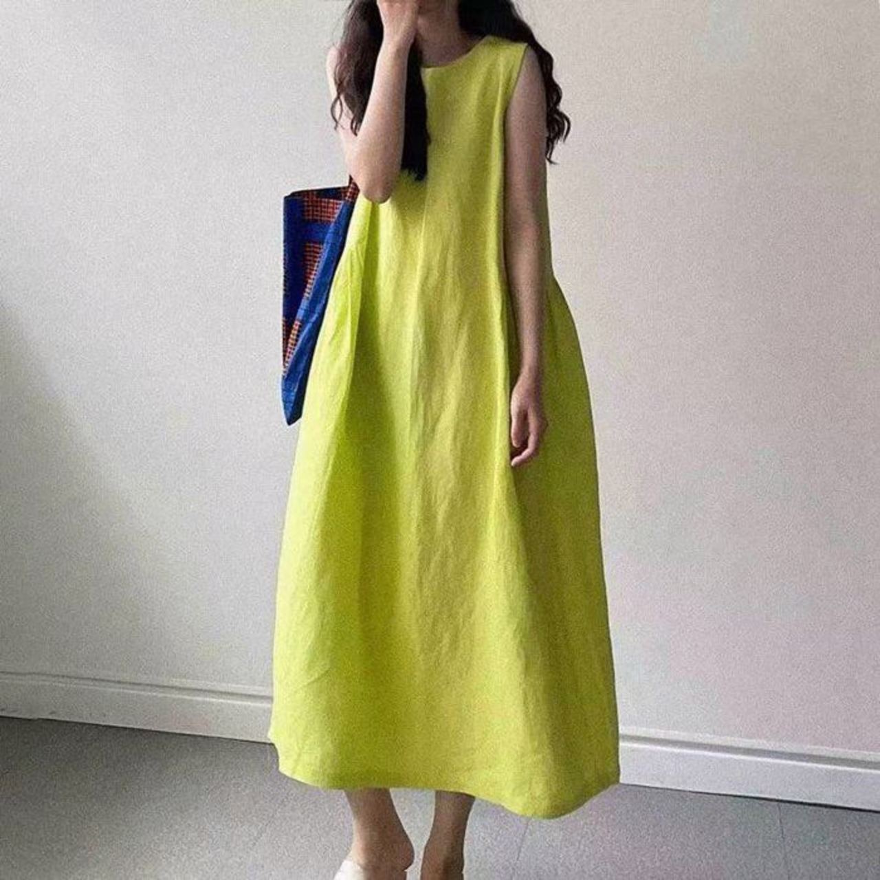 ワンピース ロングワンピース ノースリーブ 夏 無地 レディース マキシ丈 ロング丈 ワンピース 袖なし 着痩せ シンプルskwxz04