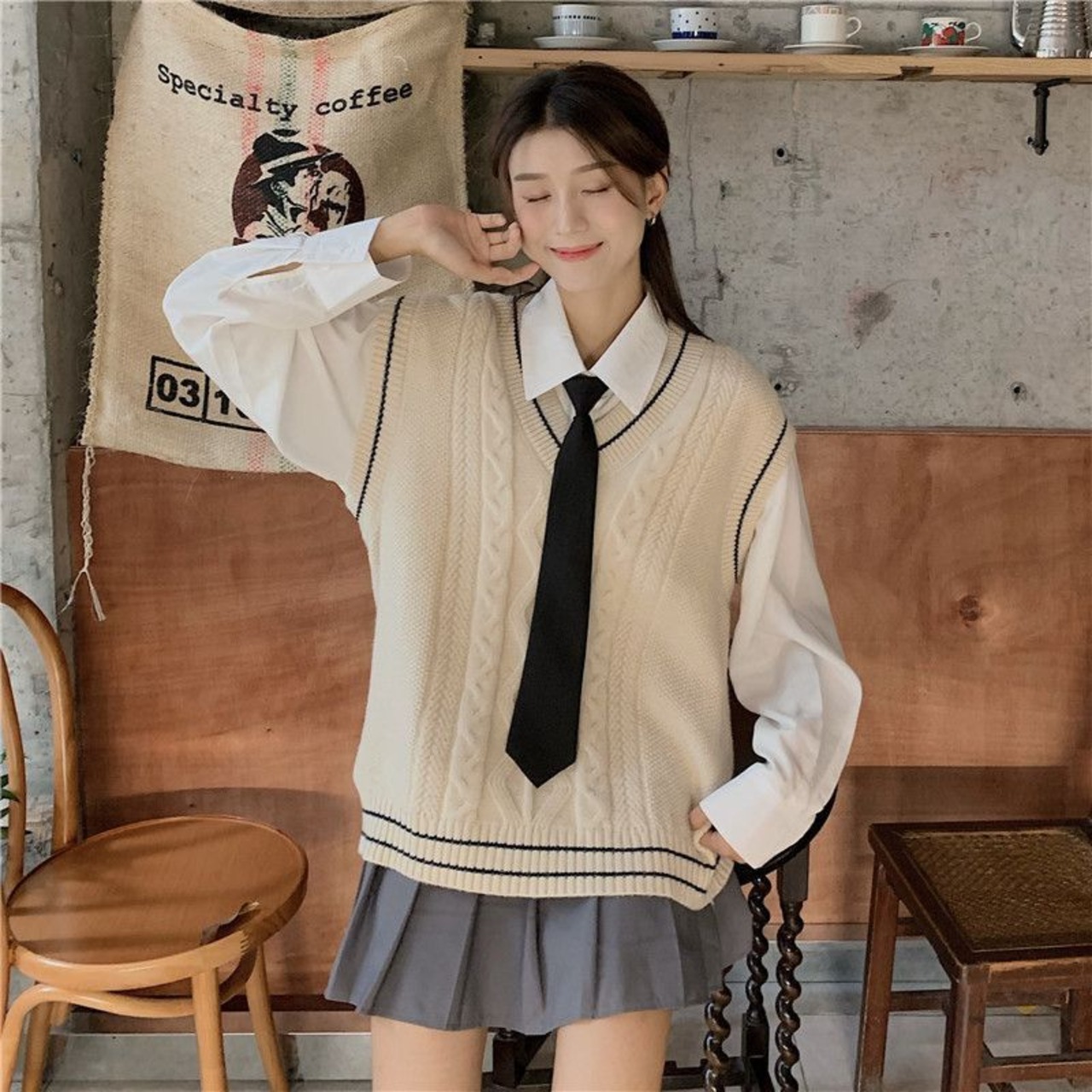 ニットベスト Vネック スクールベスト ライン入り 女子 学生 制服 ニット スクール セーター ノースリーブ 春 夏 秋 冬 JK 通学 高校生sscs01